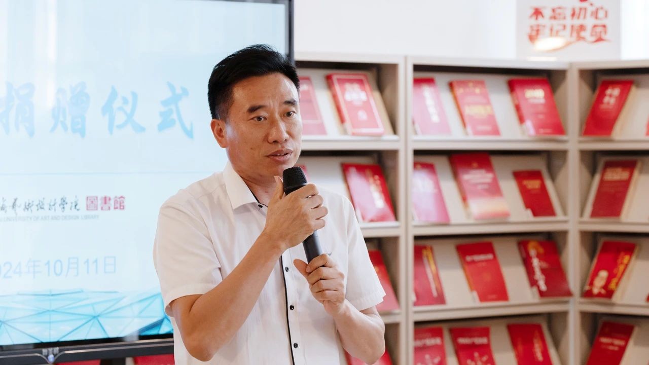 陶立阳副校长在讲话中表示,王伟教授的此次捐赠助力了图书馆馆藏建设。他鼓励广大师生充分利用图书馆资源,汲取艺术家的设计思维与创作理念,同时也建议教师在授课过程中,向学生推荐有益的图书以供阅读。他强调,尽管数字时代为大众提供了诸多便利,但也使得知识趋于碎片化,因此大家需要培养辨别与筛选的能力,将线上与线下资源相结合,以获取更丰富、更有价值的信息。