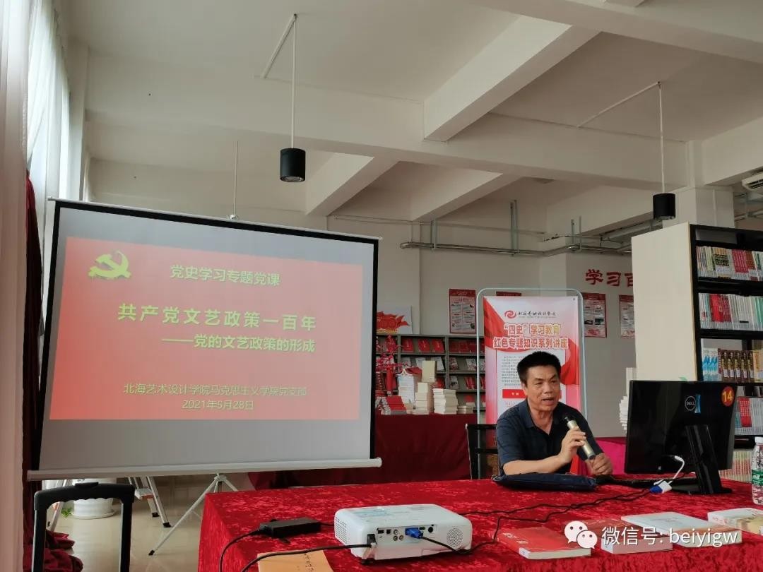 在全党如火如荼地开展党史学习教育之际,2021年5月28日下午,马克思主义学院组织全体党员、教师,在学校图书馆党史阅读角开展思想政治理论课教师理论学习暨党史学习专题党课活动,由马克思主义学院罗喜江教授作题为《共产党文艺政策一百年——中共文艺政策的形成》的党史知识培训。