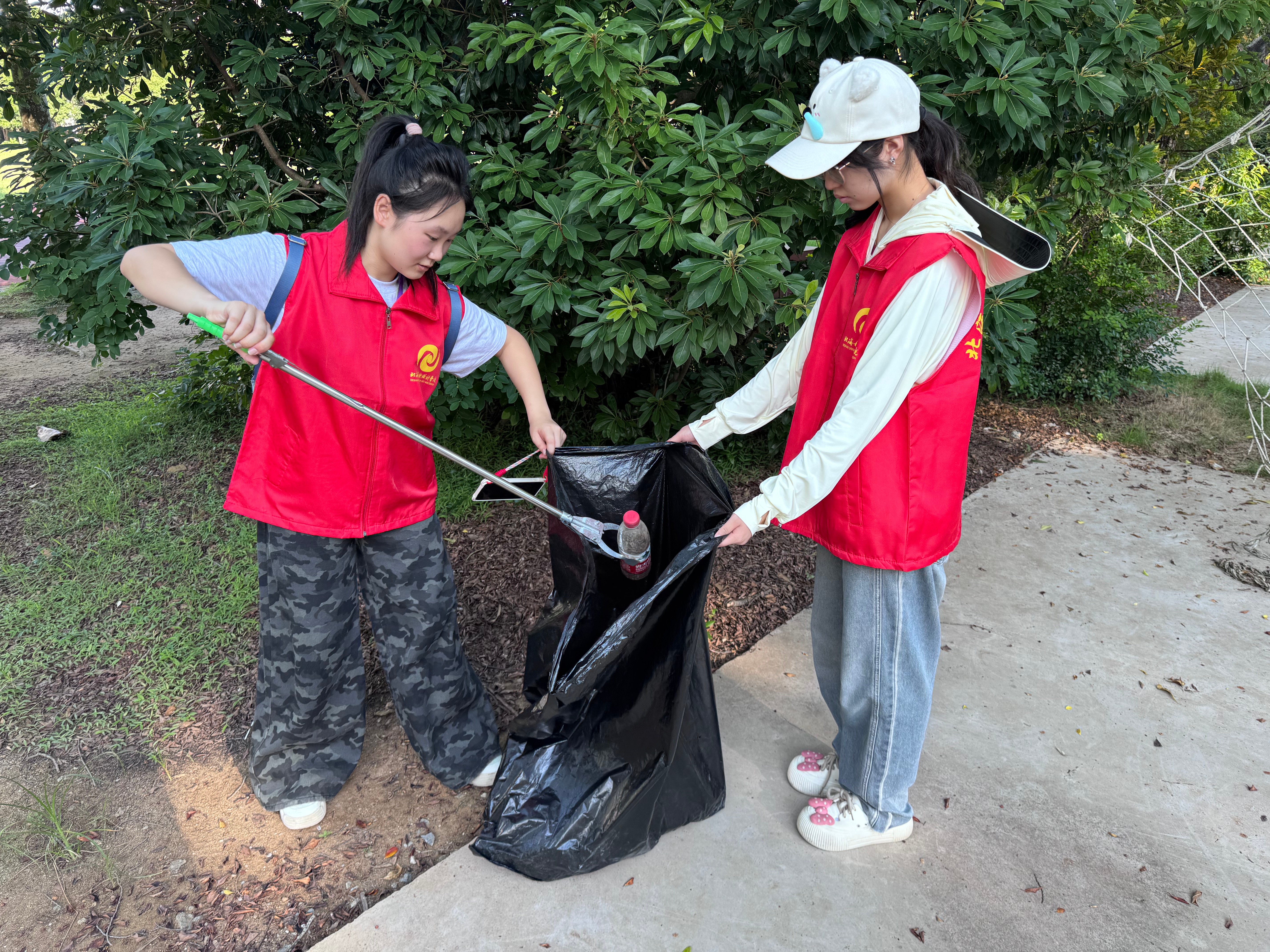 活动伊始,志愿者们按照预先分好的小组分头行动。其中一组的志愿者重点开展垃圾清理工作。大家携带垃圾夹、垃圾袋等工具,对校园道路两侧、绿化带间隙、操场周边等区域进行全面清洁,将散落的纸屑、塑料杂物、枯枝落叶等一一夹起并装入垃圾袋,不放过任何一处卫生死角。另一组志愿者则开展杂草清除作业。志愿者们俯下身来,对树边长势杂乱的杂草进行拔除。此举不仅有效提升了校园绿化景观的整洁度,而且进一步压缩了蚊虫栖息空间,为营造清爽的校园环境奠定基础。
