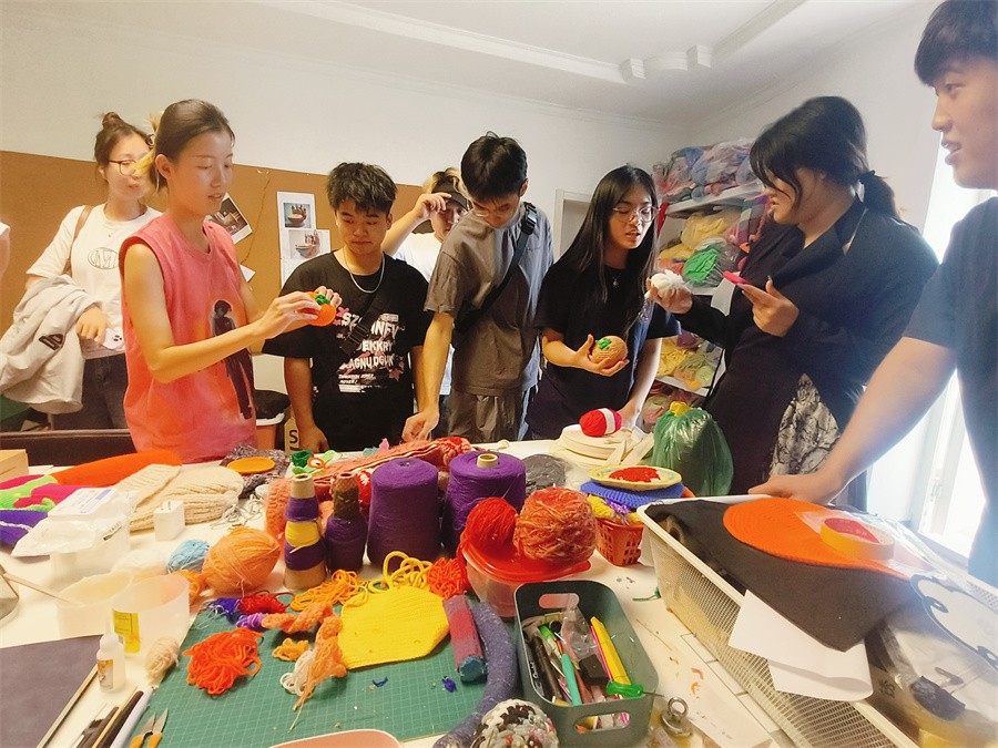 在胡尹萍工作室,艺术家跟学生分享了其品牌理念和创作过程,从灵感构思到图纸绘制,再到丝线选择和针织艺术品的制作,带领学生在每一个环节中切身感受高度的专业性和创造力。