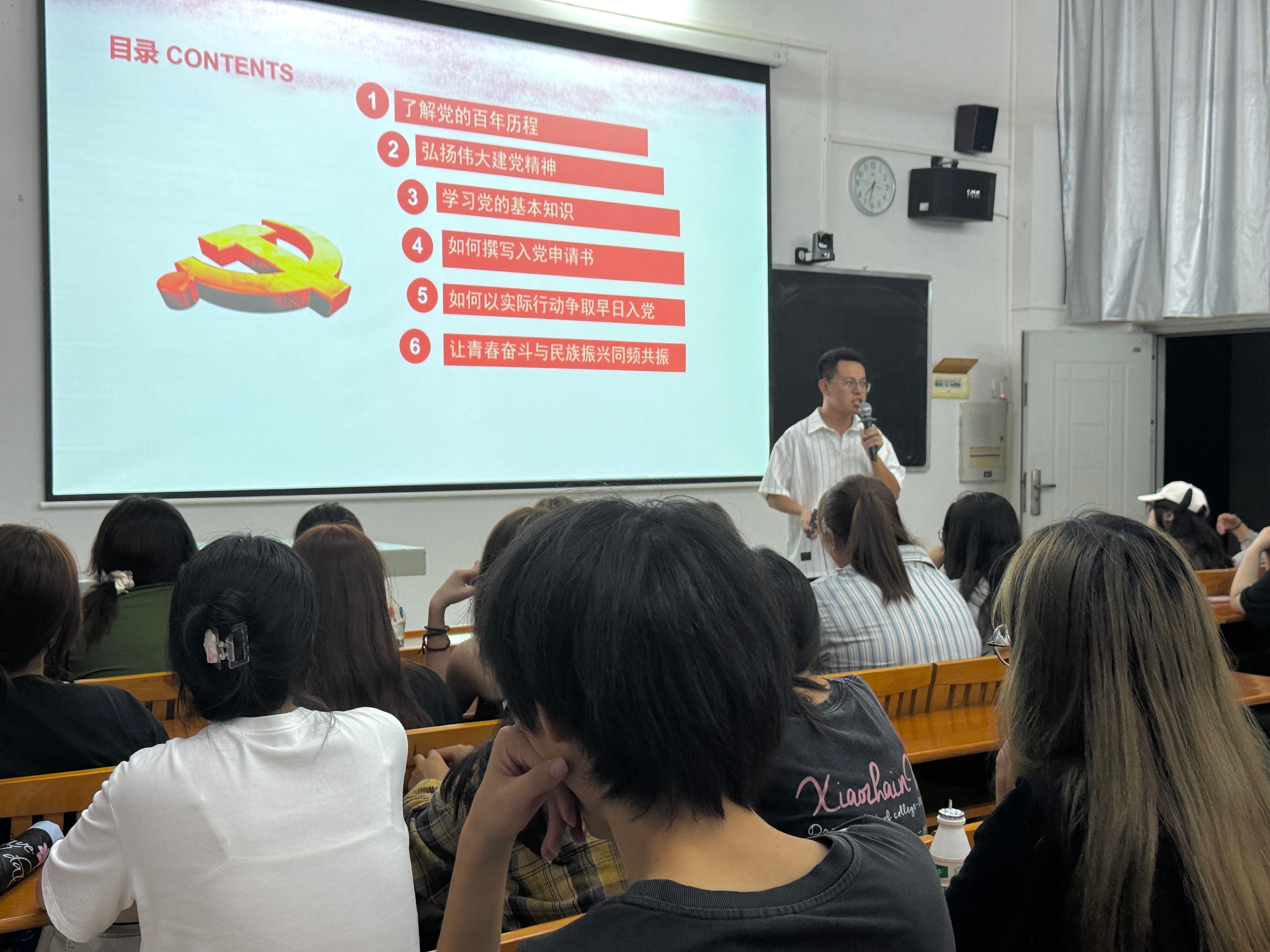 为加强新生对党的认识,帮助他们理解党的基本理论、路线和方针政策,坚定对马克思主义和共产主义的信仰,严格以党员标准要求自己,帮助有入党意愿的同学端正入党动机,争取早日加入中国共产党,服装学院党支部开展了2024级新生入党启蒙教育活动,此次讲座由学院党支部书记曹永攀主讲,内容涵盖了了解党的百年历程、弘扬伟大建党精神、学习党的基本知识、如何撰写入党申请书、如何以实际行动争取早日入党以及让青春奋斗与民族振兴同频共振六个部分,为新生们提供了一次全面而深刻的党性教育。
