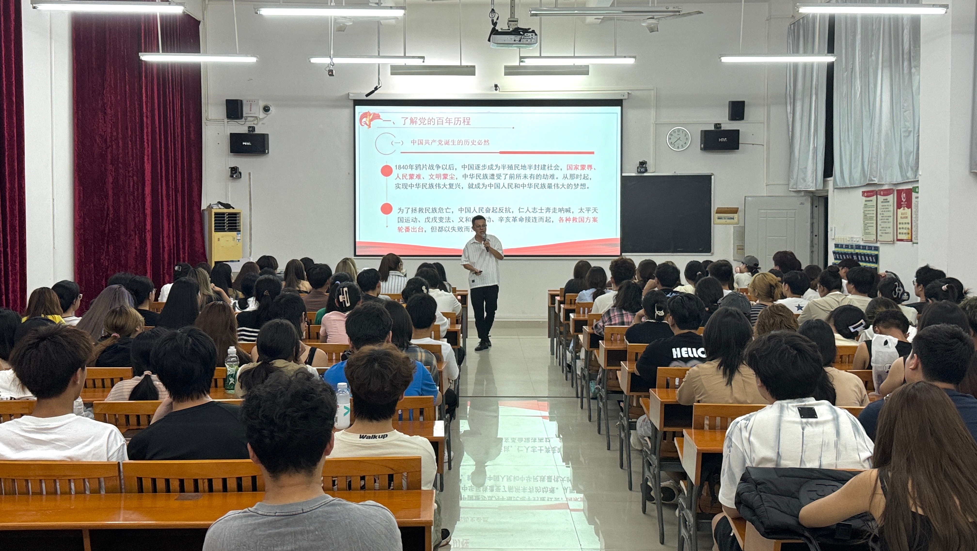在讲座中,曹永攀书记首先带领大家回顾了党的光辉历程,从成立之初的艰辛探索,到如今的繁荣昌盛,每一个重要历史节点都凝聚着无数共产党人的奋斗与牺牲。他勉励新生们要珍惜来之不易的幸福生活,更要继承和发扬党的优良传统,为实现中华民族伟大复兴贡献自己的力量。