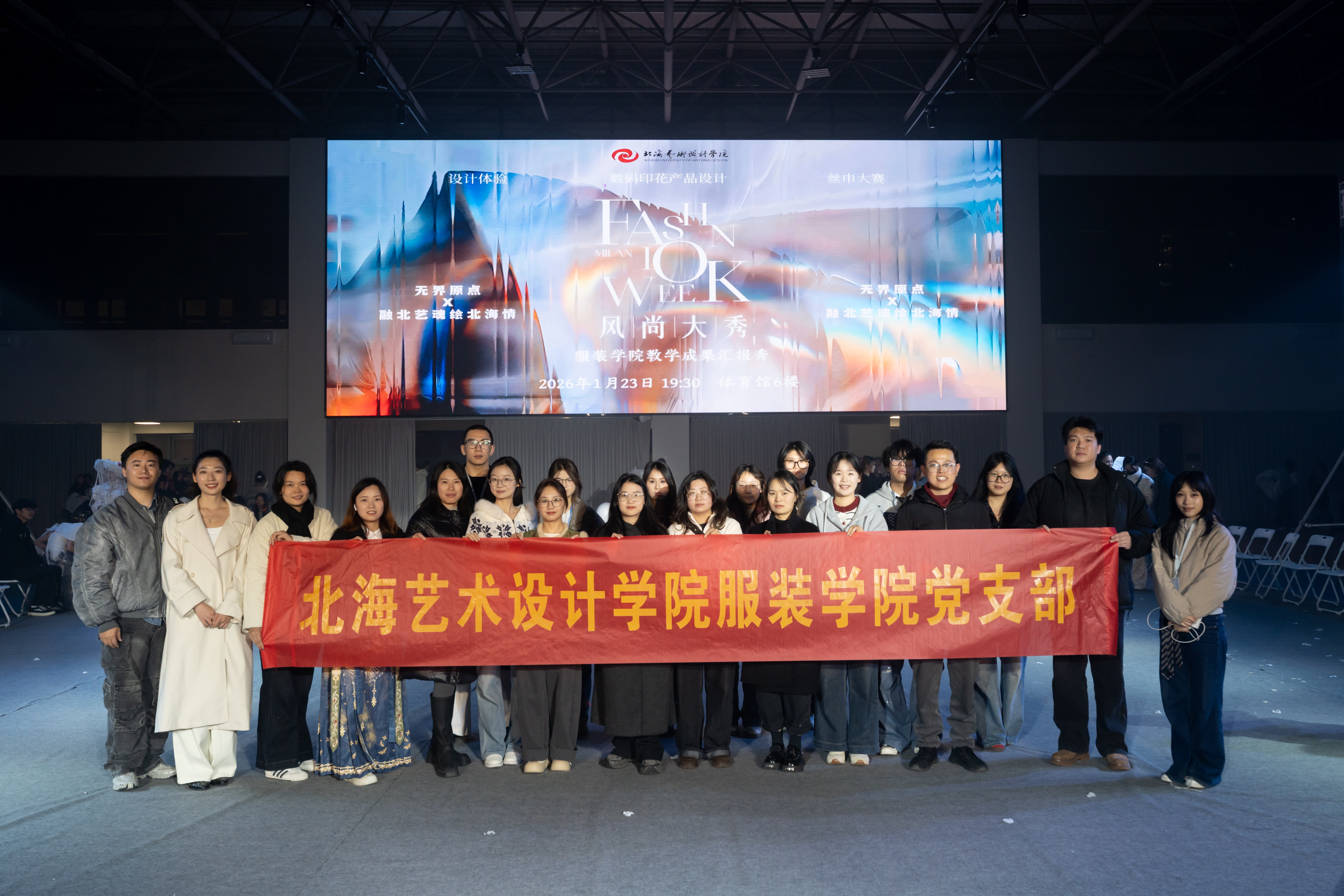 1月23日晚,“融北艺魂·绘北海情”北海艺术设计学院2025年丝巾设计大赛颁奖典礼暨作品秀场圆满落幕。学校副校长邱杰、陶立阳、包建明,总督学王斌、宣传部部长文春明出席颁奖典礼。服装学院党支部书记曹永攀、机关第二党支部书记覃虹、马克思主义学院院长姜献生、建筑与环境艺术学院院长张春东、传媒艺术学院院长杜博、造型艺术学院院长邓渠成、创新创业学院院长陈渤水、文学院常务副院长梁镨文等学校各部门、二级学院相关领导参加活动。
