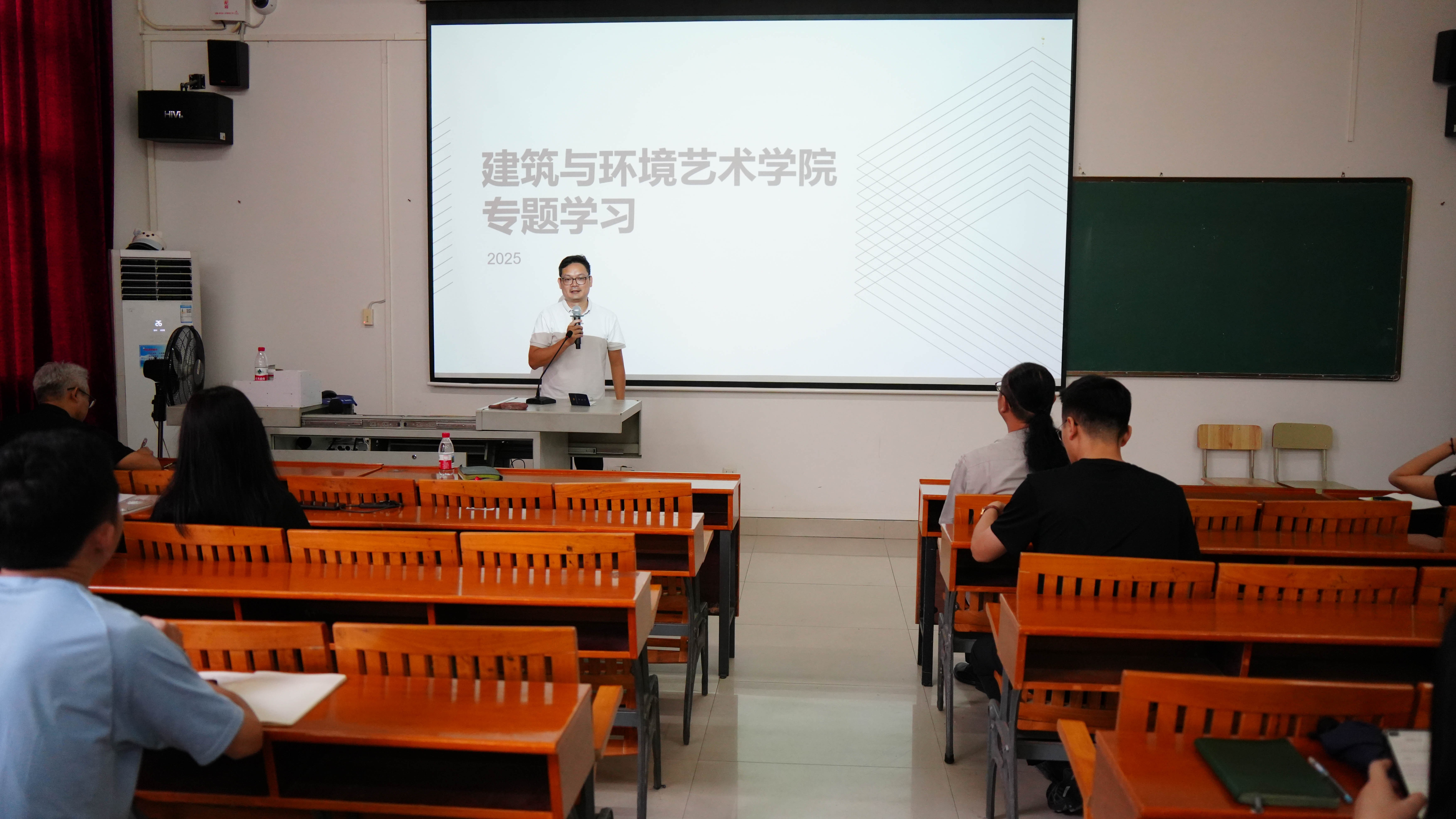 2025年10月15日上午,建筑与环境艺术学院在公德楼106教室组织开展2025年第三季度政治理论学习活动。此次学习由我院庞定坤书记带领全体教职工进行,旨在通过系统理论学习,进一步统一思想、凝聚共识,为教育教学工作注入思想动力。