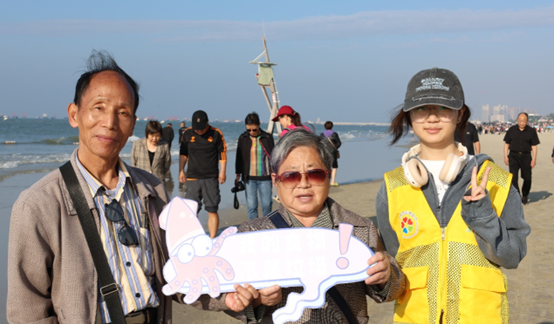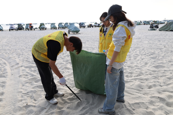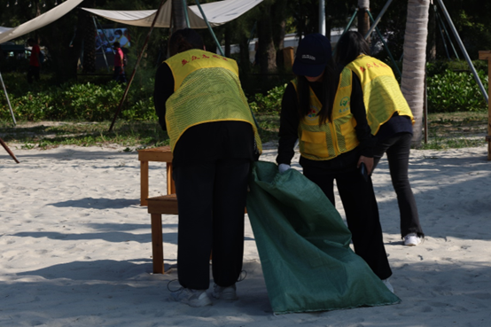 在活动现场,志愿者们身穿马甲,携带夹子、塑料袋等工具对沙滩进行清洁。他们弯着腰,目光专注地在沙滩上搜寻。大大小小的纸屑、烟头、塑料品等垃圾都逃不过志愿者们的火眼金睛,阳光洒在他们身上,映照出认真的神情。每一次俯身拾起垃圾的瞬间,都凝聚着对自然的敬畏;每一滴滑落脸颊的汗水,都映射出对环保的执着;每一抹嘴角上扬的微笑,都传递着对绿色的热爱。整个过程志愿者们不辞辛苦,经过几个小时的辛勤劳动,不知不觉便“收获”了满满几袋垃圾。志愿者们用实际行动证明,保护海洋生态环境没有止境,也绝非一句口号。