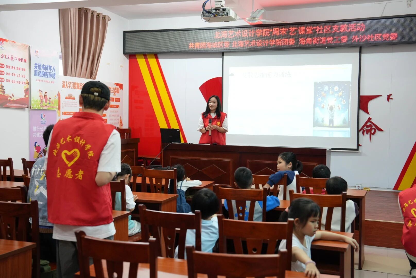 此次立项区级公益项目,定点合作单位为北海市青少年宫,目前志愿者每周末定期开展艺术课堂教学活动,现开设手工、绘画、安全自护、音乐与口才四个类别的艺术趣味课程,项目积极将美育课堂从社区延伸至儿童活动阵地。未来,我校团委将以此次立项为契机,秉持志愿服务精神,以艺术之光照亮童心成长之路,用青春行动诠释高校青年的责任与担当,让“青伴童行” 的温暖力量传递更远!(朱婉如/摄)