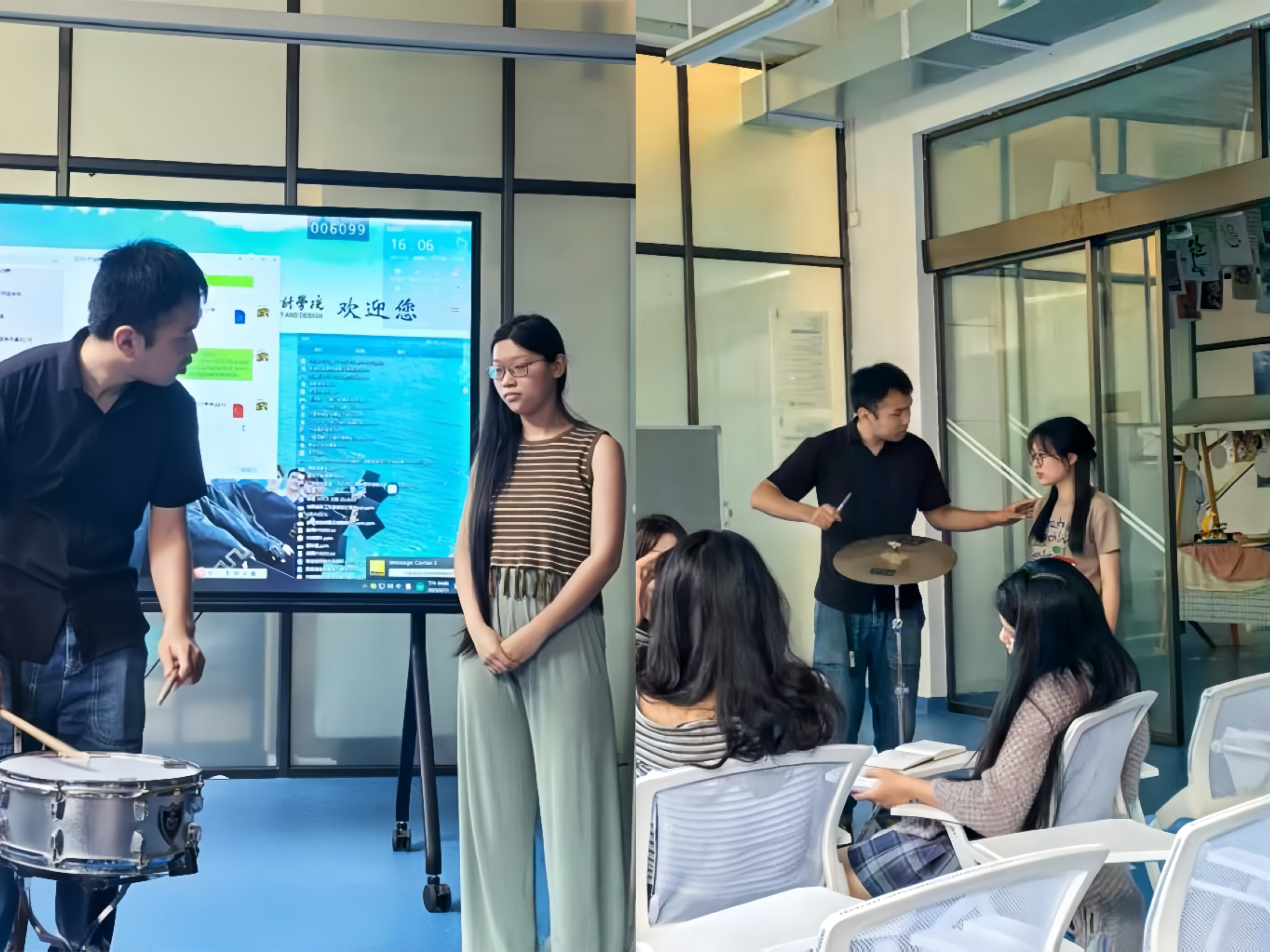 马超老师精心设计了一系列音乐情境游戏,采用音乐偏好敏感性测试以及即兴演奏体验等形式,让同学们切身感受音乐对情绪的奇妙调节作用。活动现场,同学们热情高涨、踊跃参与。参与学生纷纷表示,这场体检交流会妙趣横生,深化了大家对音乐疗愈的理解,收获颇丰。