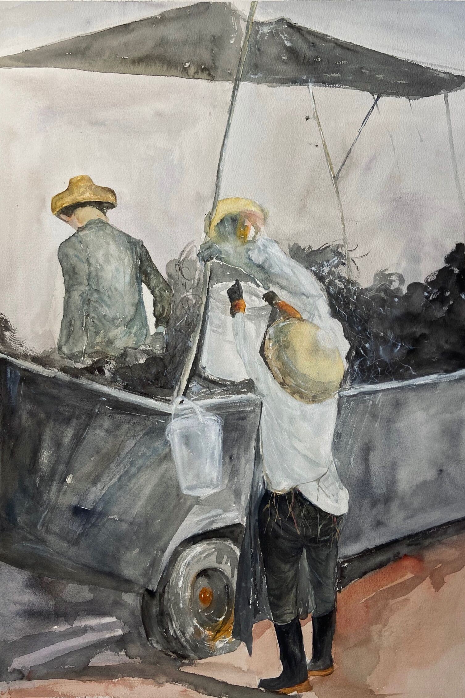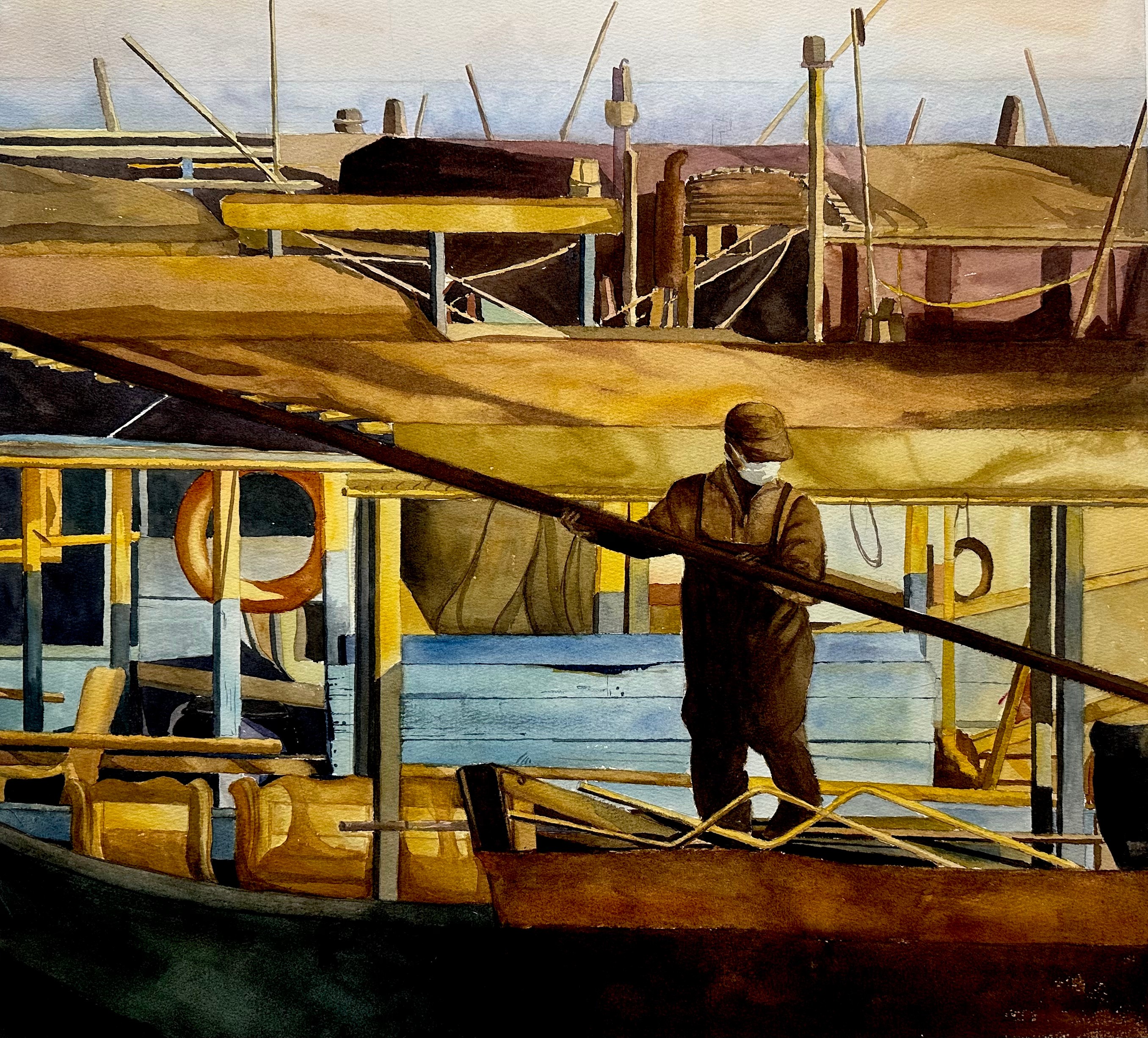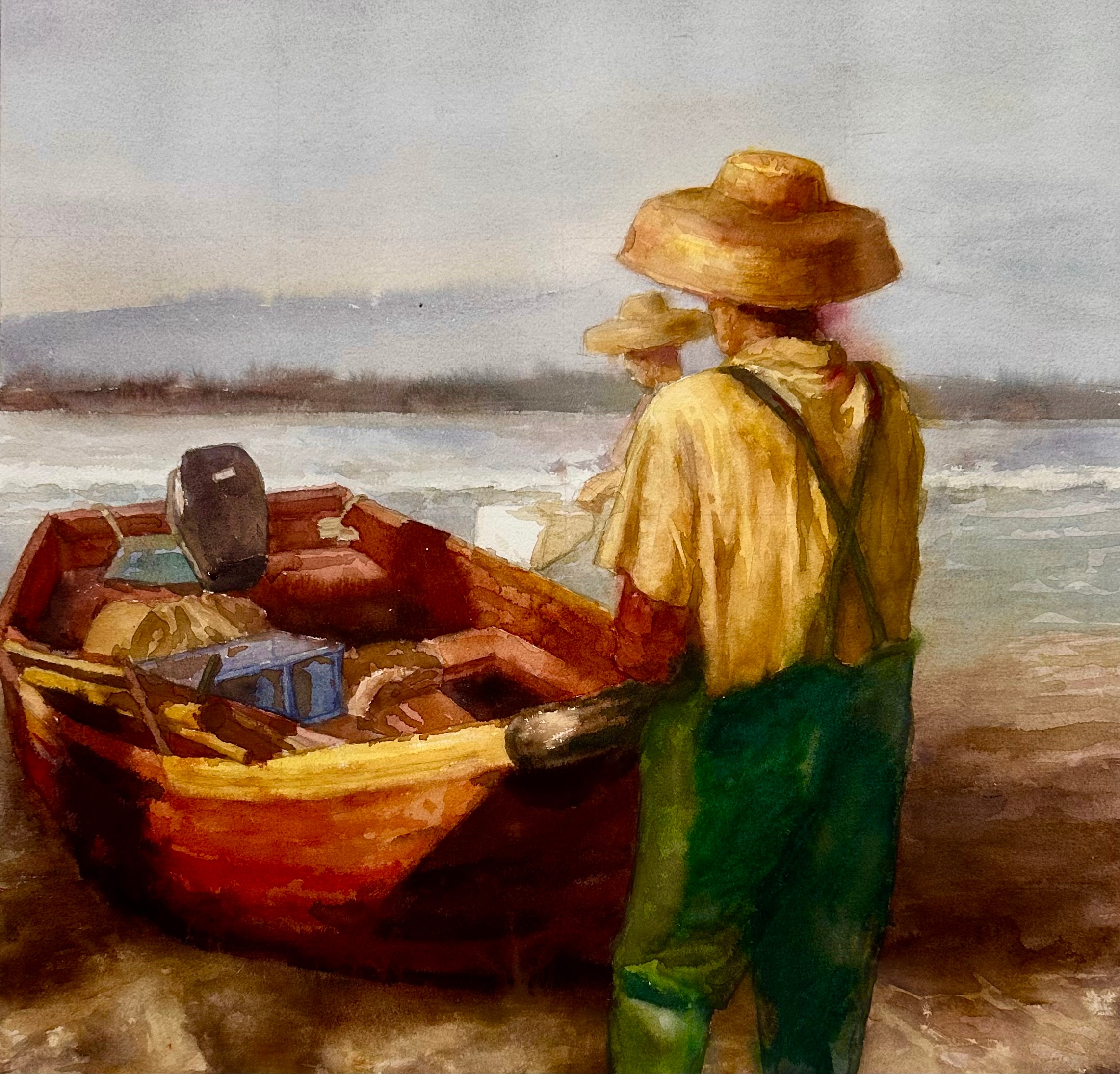 徐盼《船夫》53cm×76cm  2023年 纸本水彩