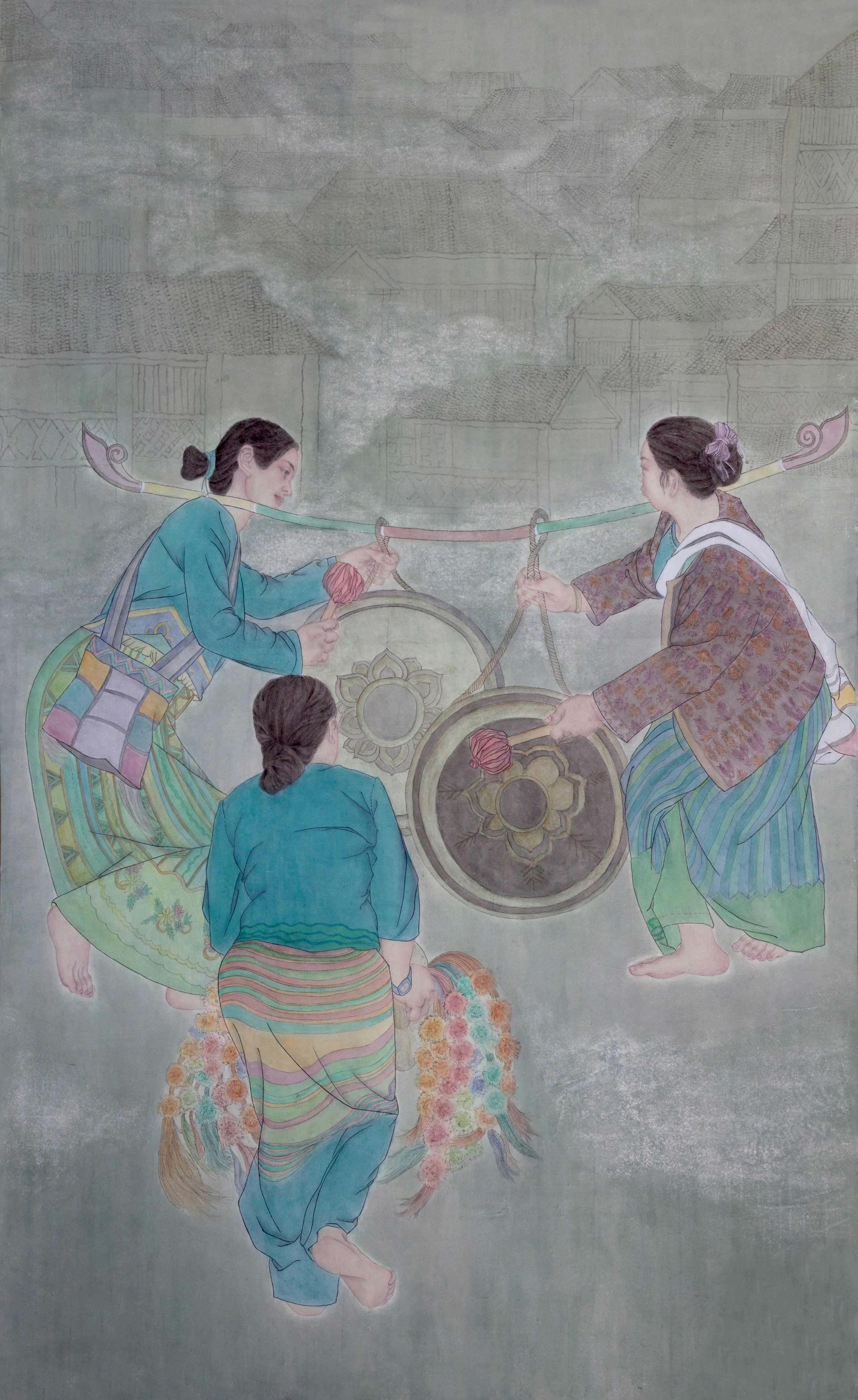 叶辰中《傣乡欢庆》182×115cm  2023年 纸本