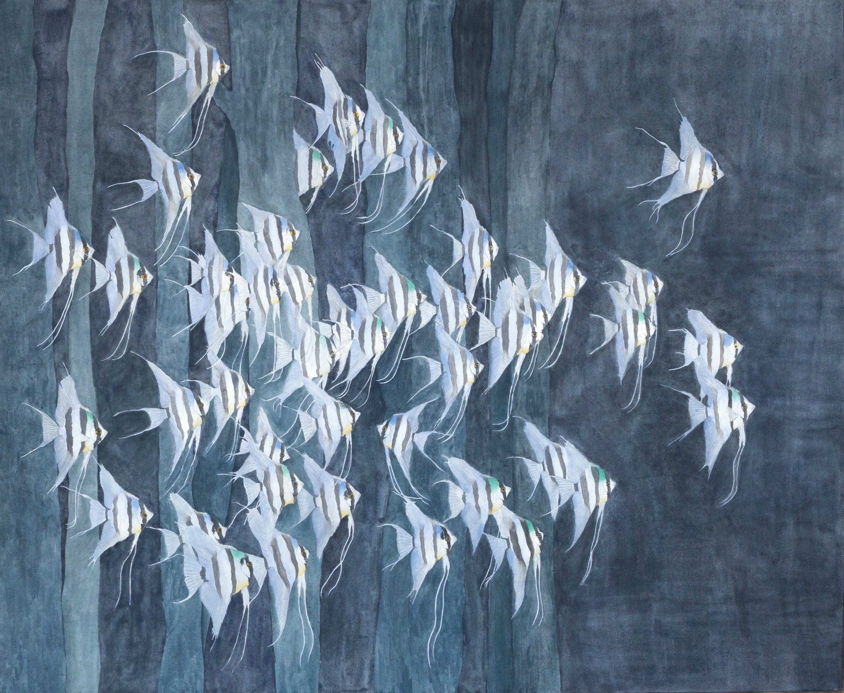 白滢《群鱼夜游》169×138cm  2023年 纸本