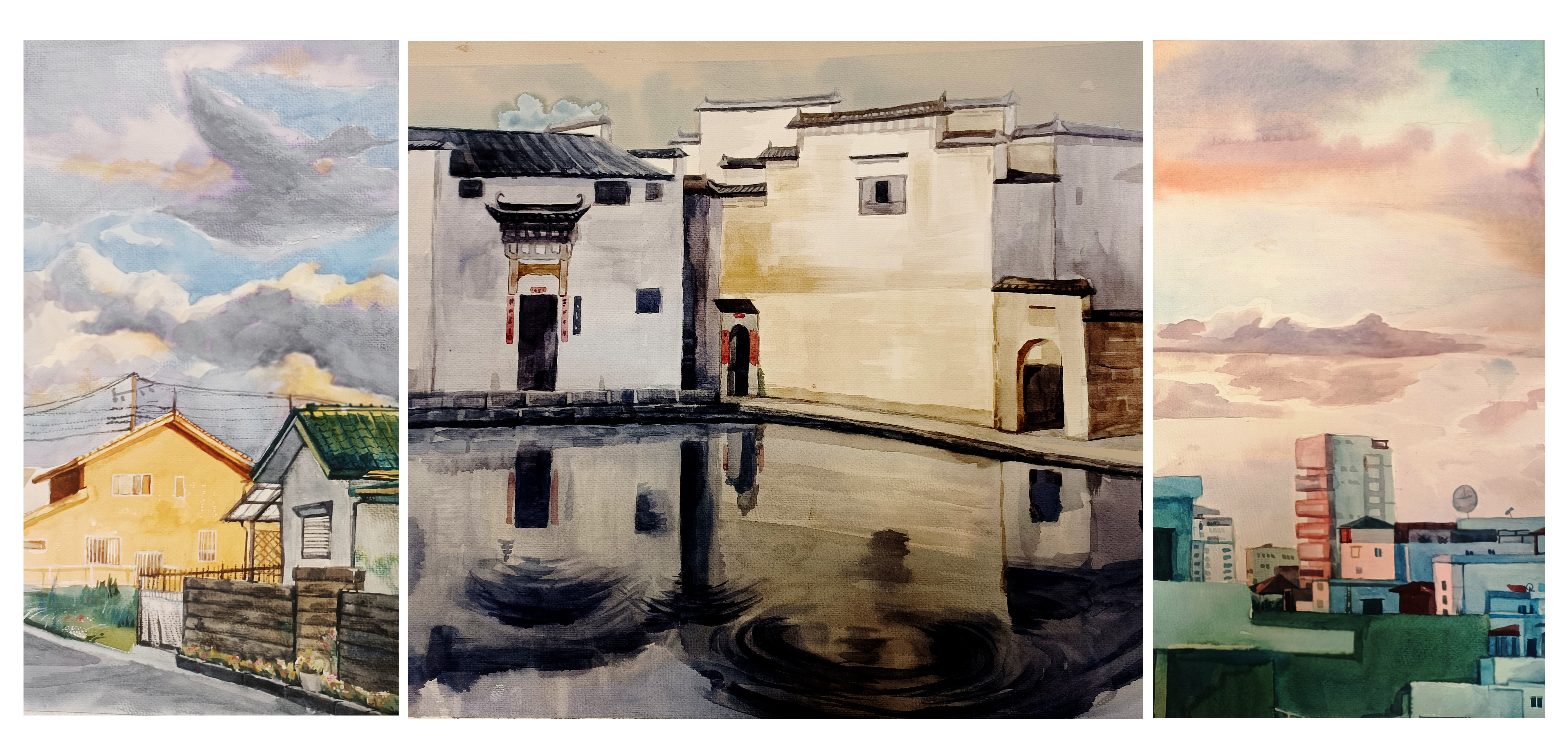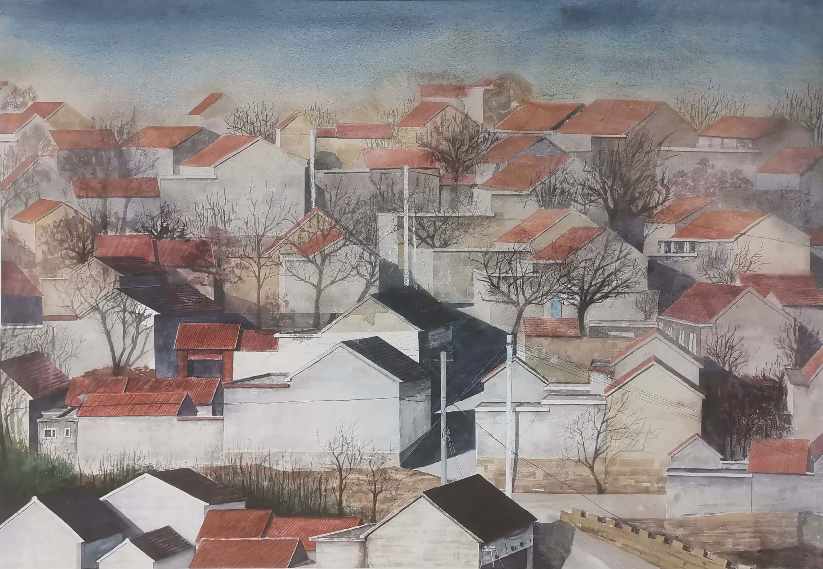 韦宇欢《小镇》51cm×75cm 2023年 纸本水彩