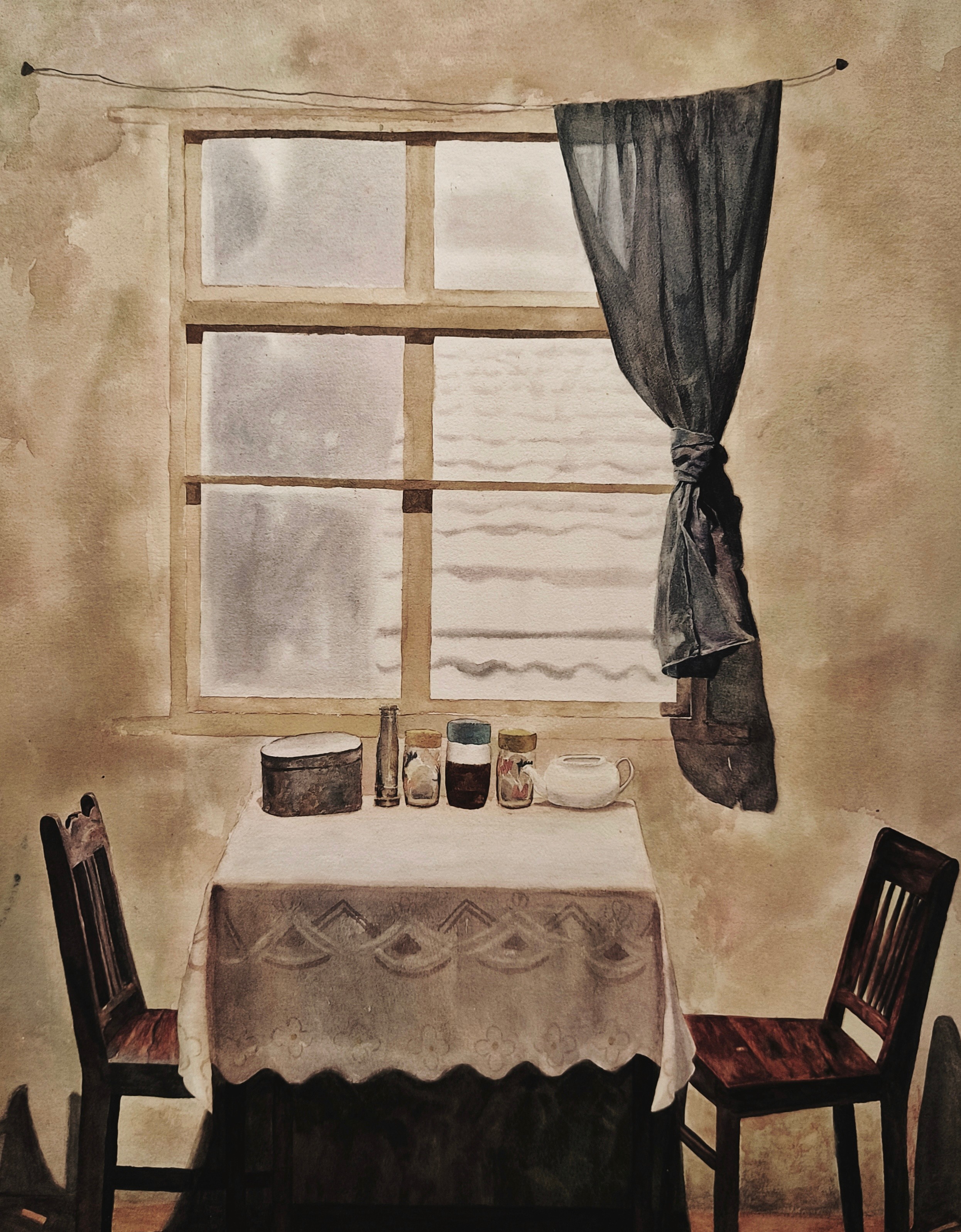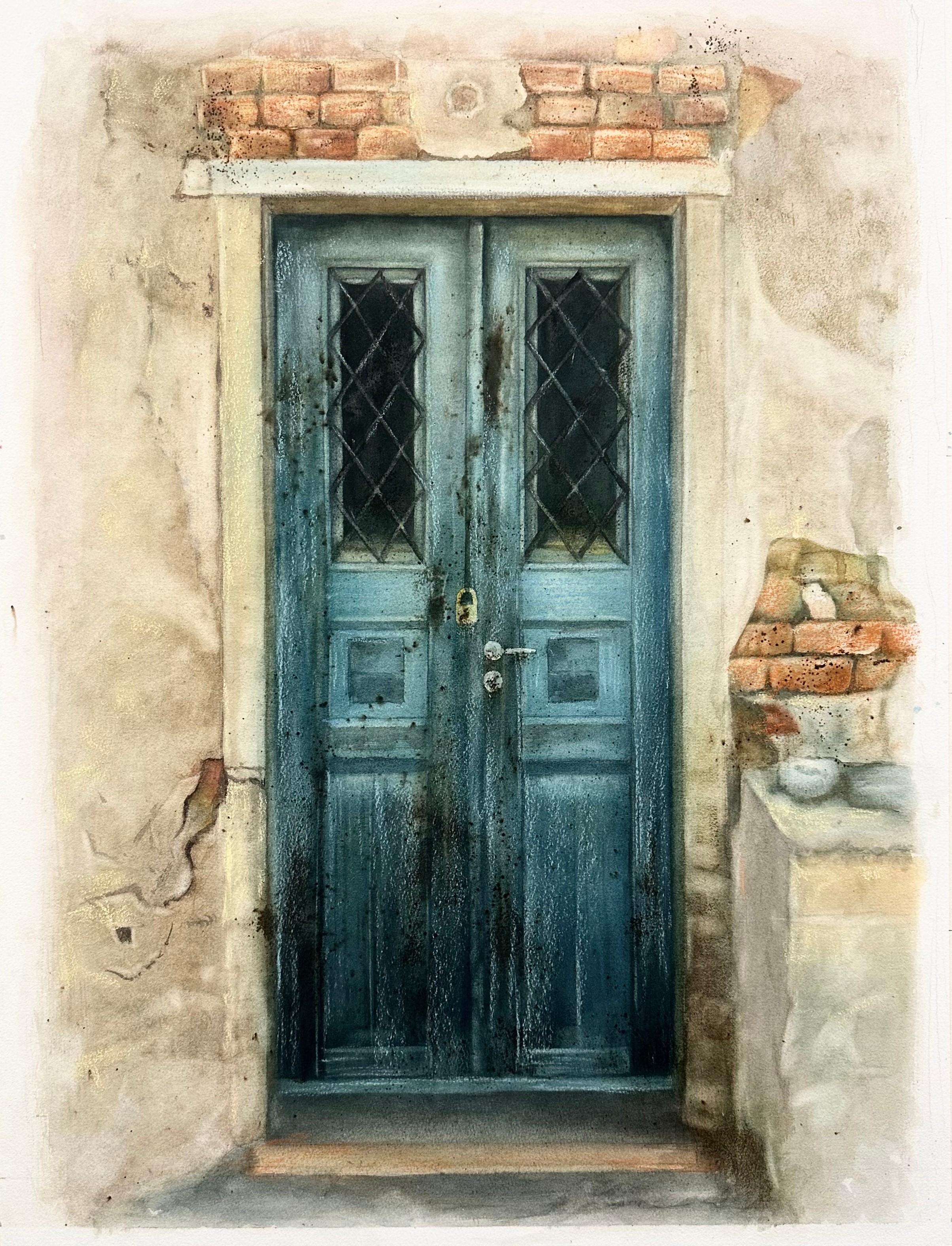 邵俊茹《记忆的小窗》76cm×53 cm  2023年 纸本水彩