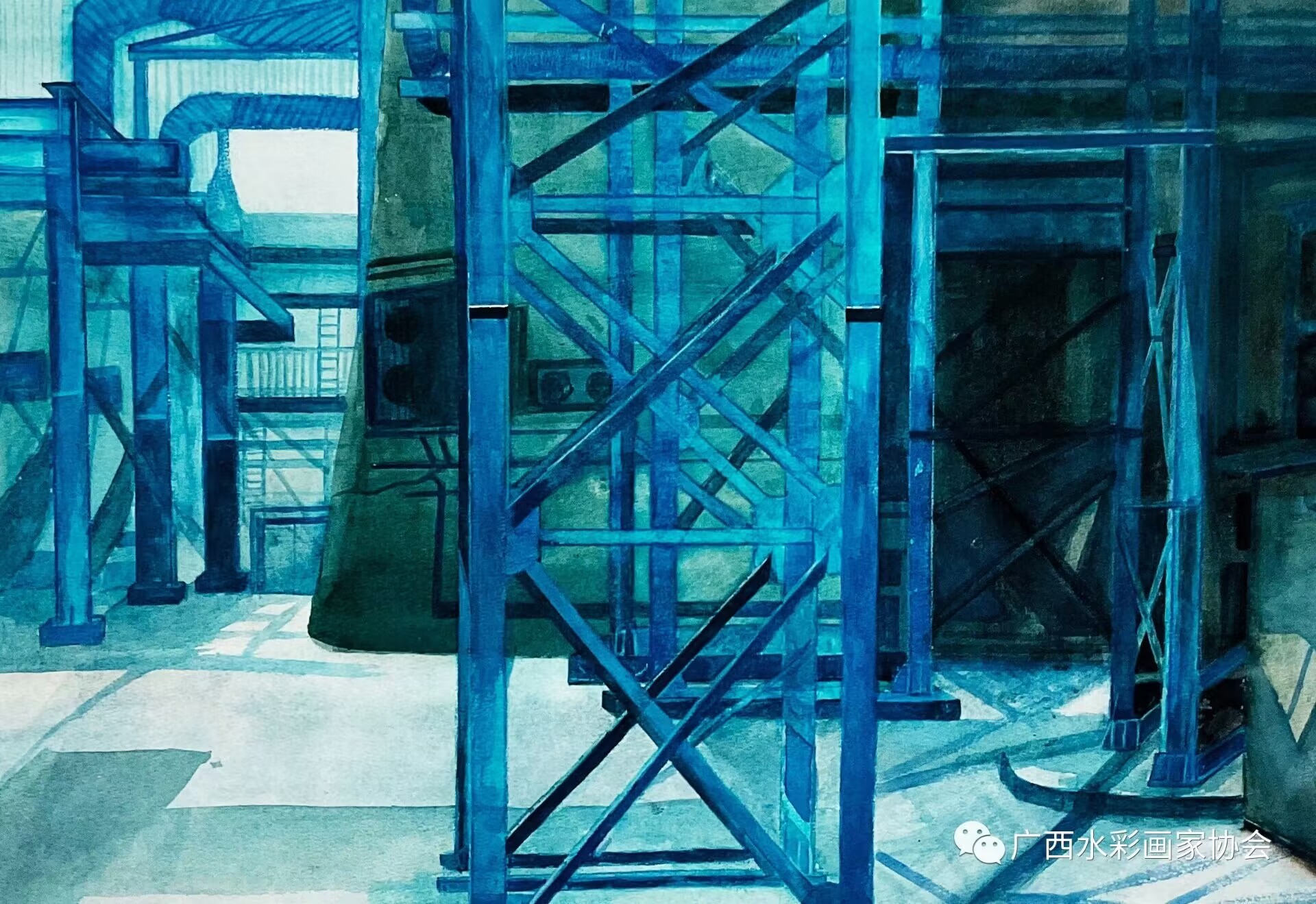 张官却什吉 《厂房的空间》54cm  x76cm2023年 纸本水彩