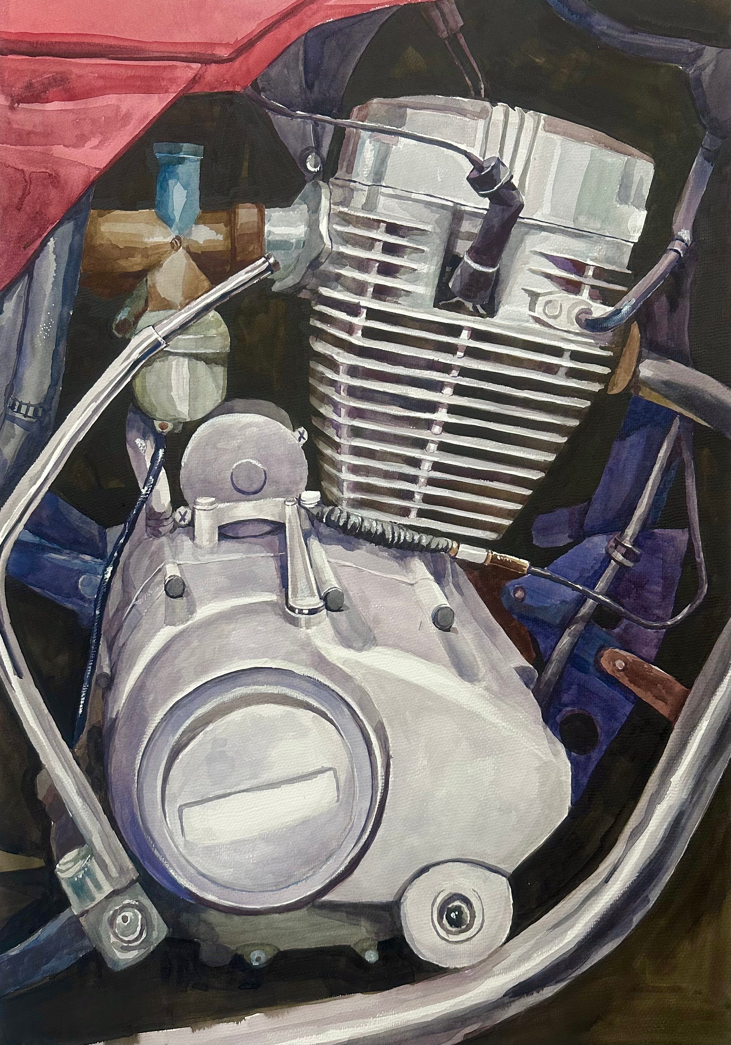 李贝贝 《摩托车的心脏》 75cm×52 cm  2023年 纸本水彩