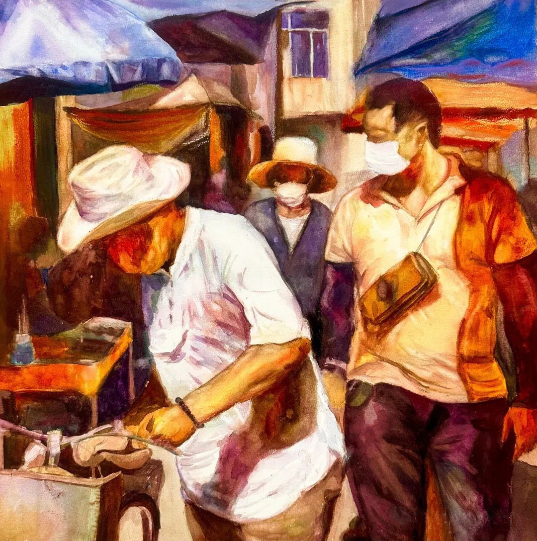 常玉研《集市一瞥》48cm×48cm   2023年 纸本水彩