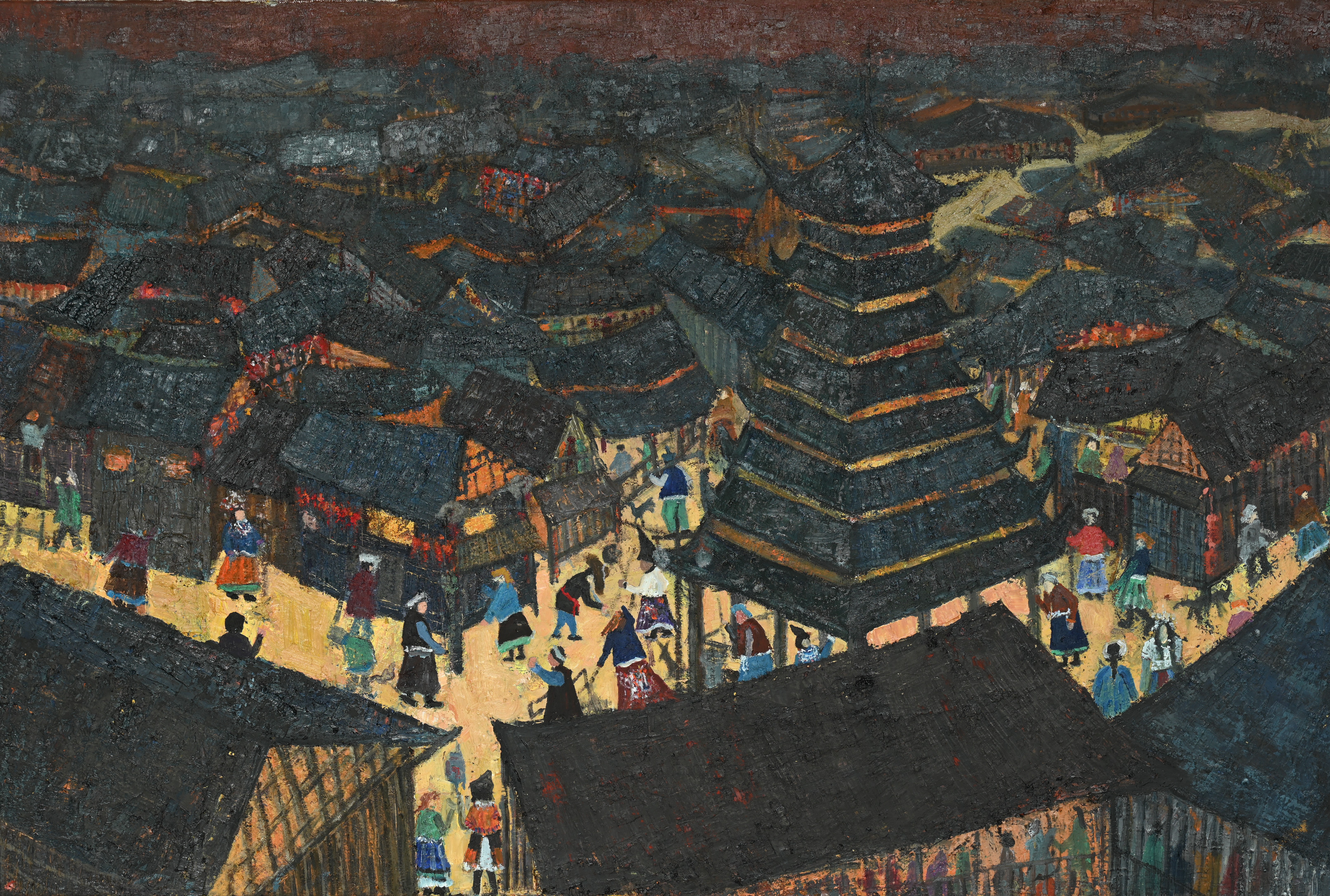 绘画2105班 祁菊《侗寨笙歌》 80×120cm 指导教师:袁志伟