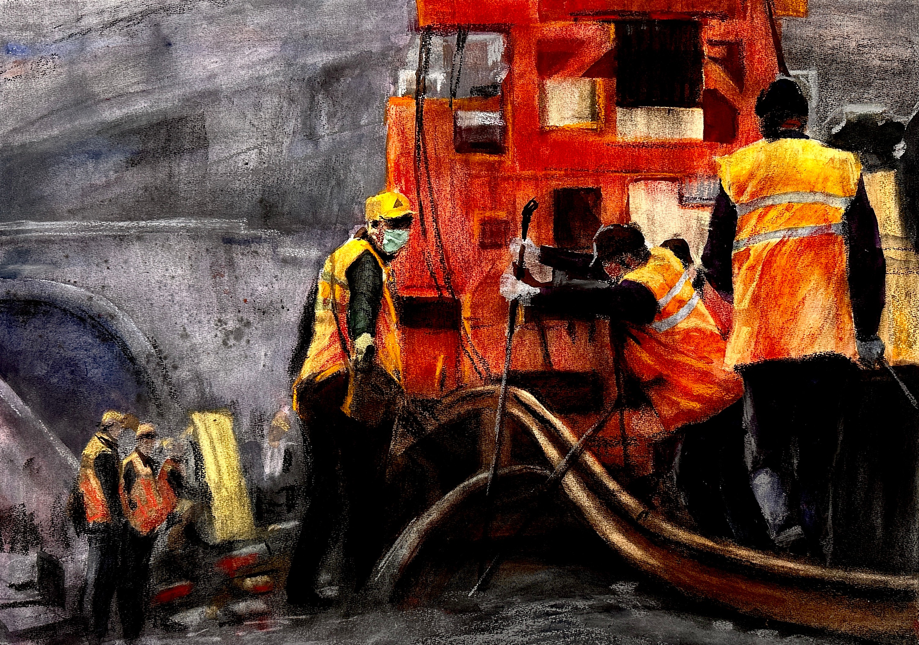 范宝怡 《“画说”工务人》 53x76cm 指导教师:刘广滨、陈亚宗