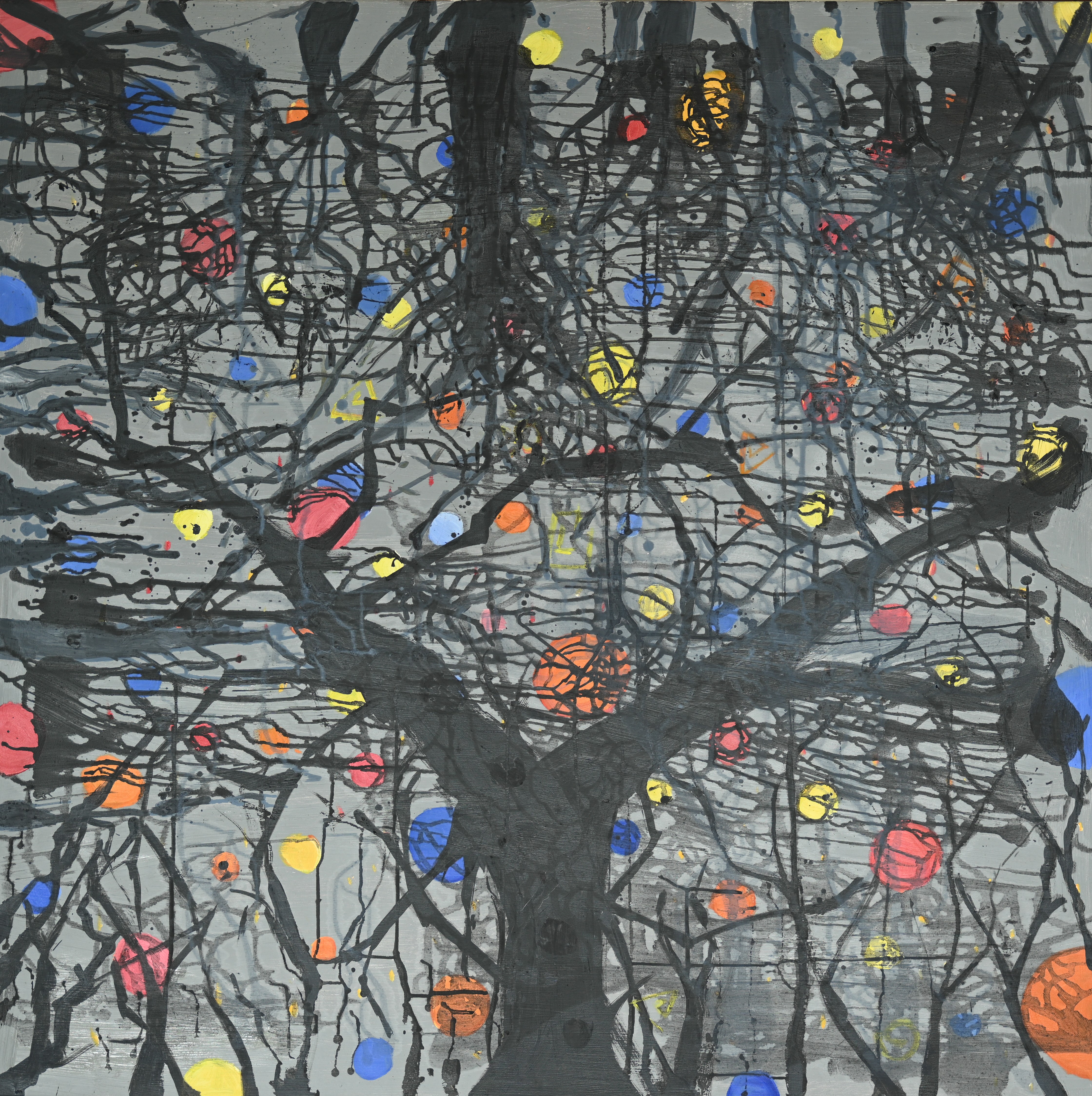 绘画2105班 邹熠《林影交织》 120×120cm 指导教师:袁志伟