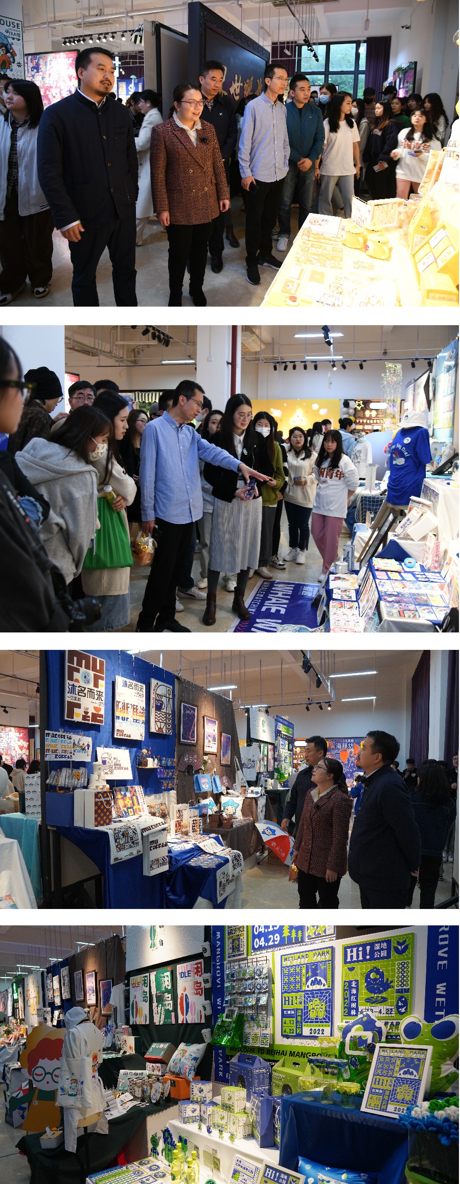 开幕式结束后,各位嘉宾和教师进入展厅观展。通过与学生的密切交流和讲解,理解与感受作品的设计理念和创新之处。
