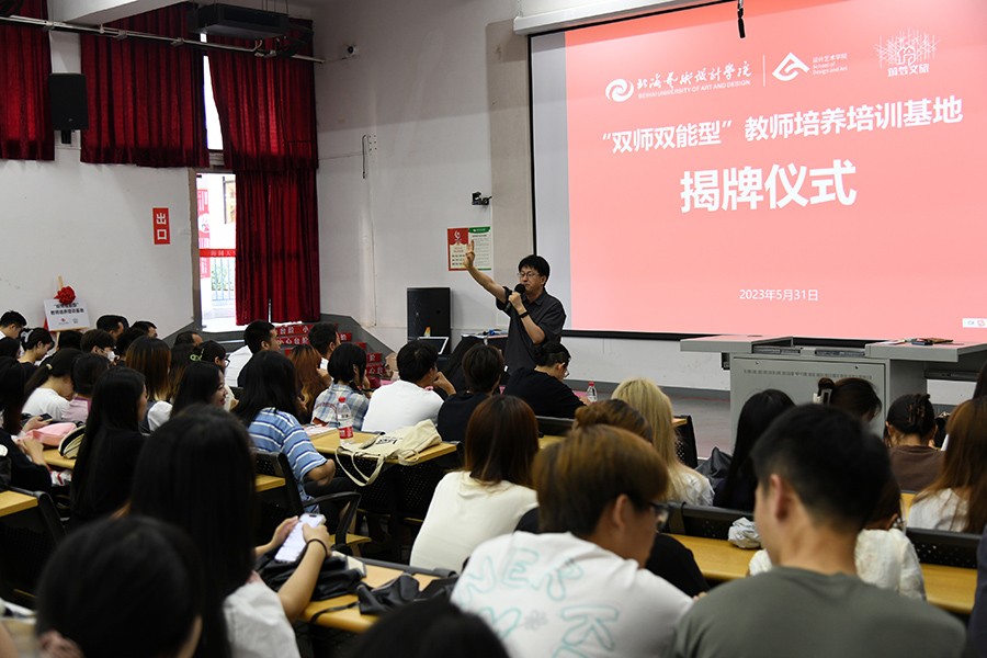 首先进行了我校与筑梦文创共建“双师双能型”教师培养培训基地的揭牌仪式,借此共建机会,加强我校“双师双能型”教师队伍建设,进一步提升应用型人才培养质量,增强服务地方经济社会发展能力。