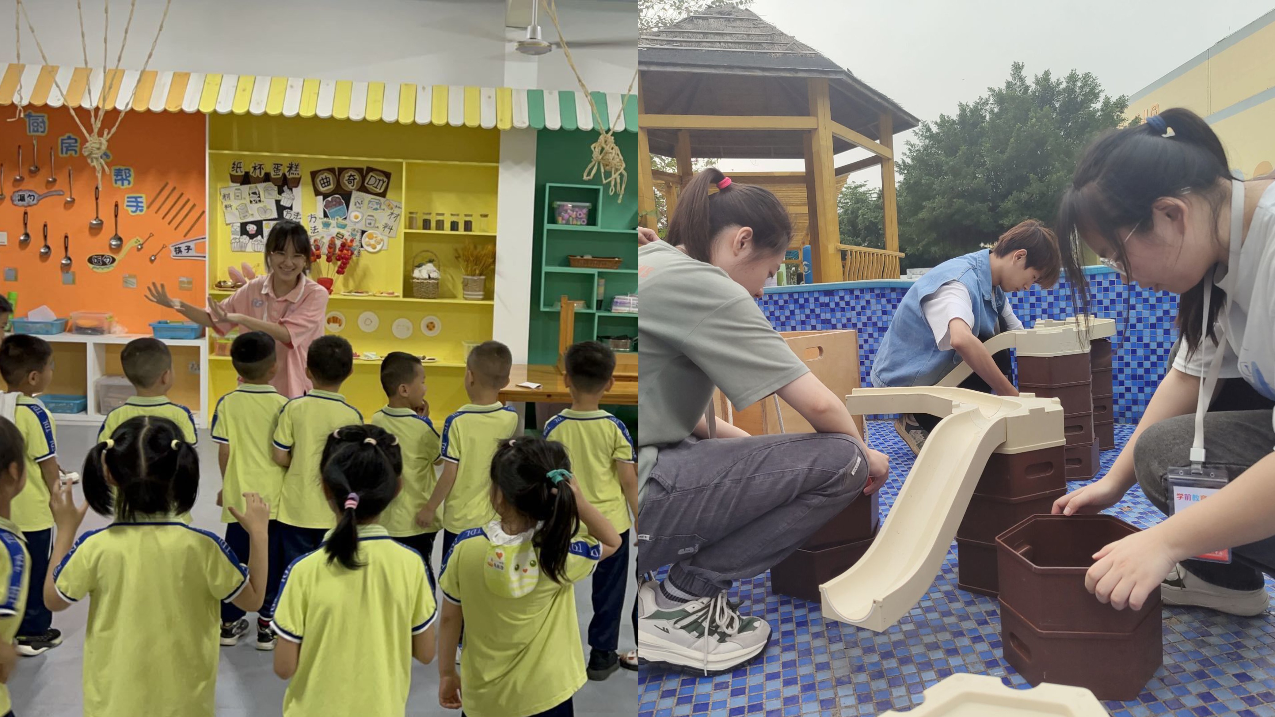 见习生给幼儿独立授课                                                                                见习生参与幼儿园环创活动