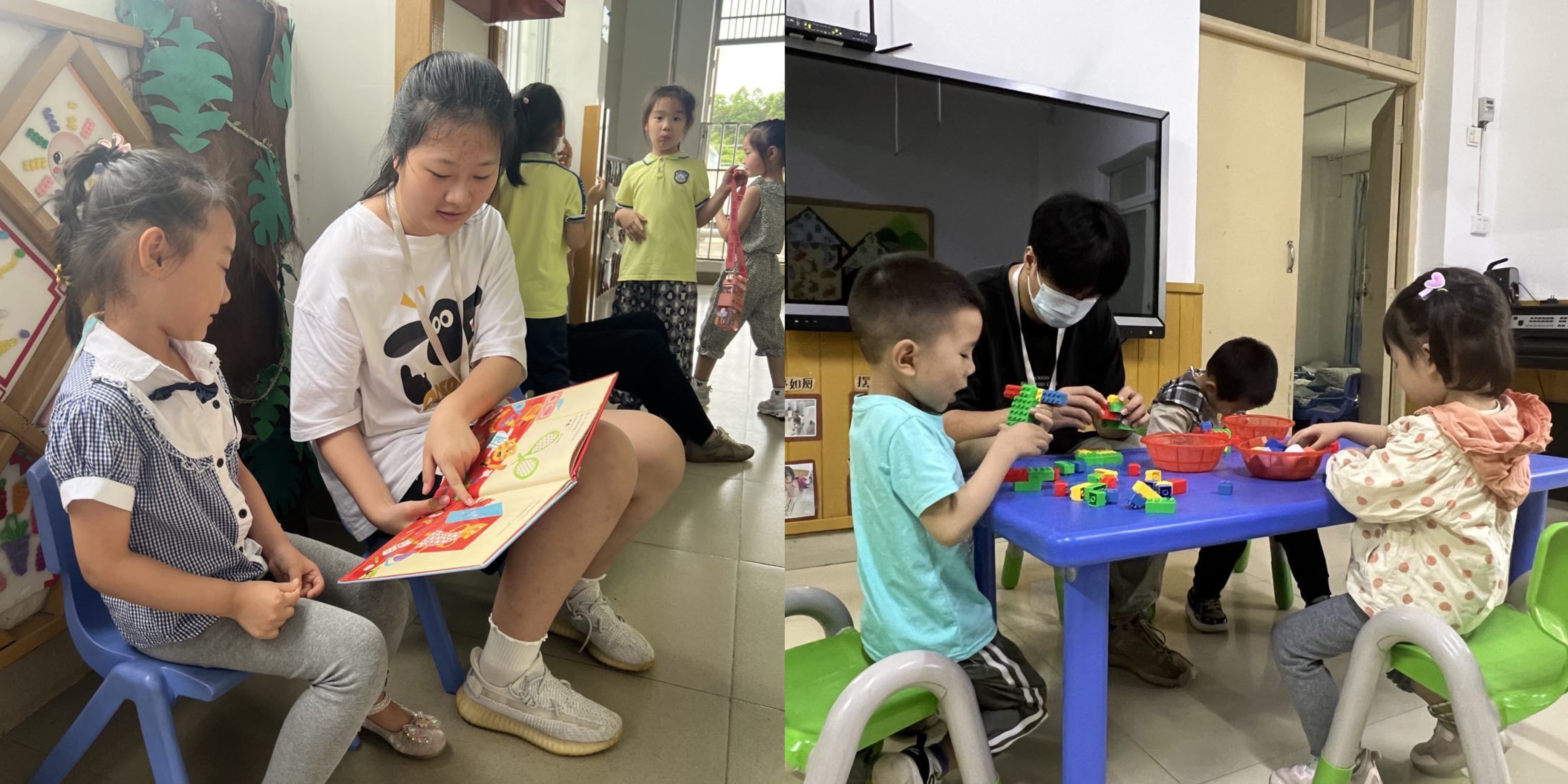 见习生给幼儿讲述故事                                                                                                            见习生和幼儿一起玩游戏