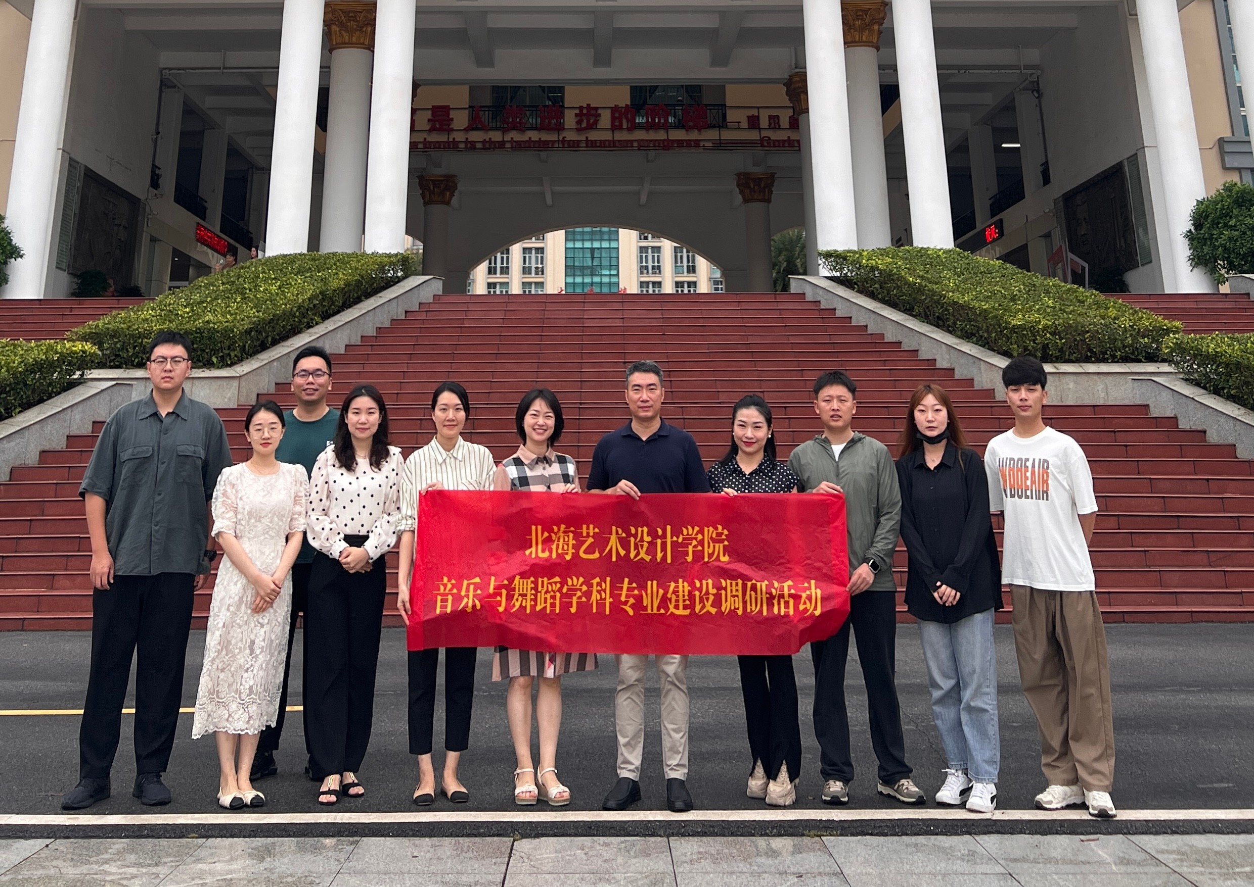 为进一步加强音乐与舞蹈专业学科建设,科学合理制定2023级人才培养方案,6月26日,我副院长李谦带领人文教育学院考察交流团11人前往广西外国语学院艺术学院(五合校区)开展音乐与舞蹈学科专业建设及人才培养等交流调研工作