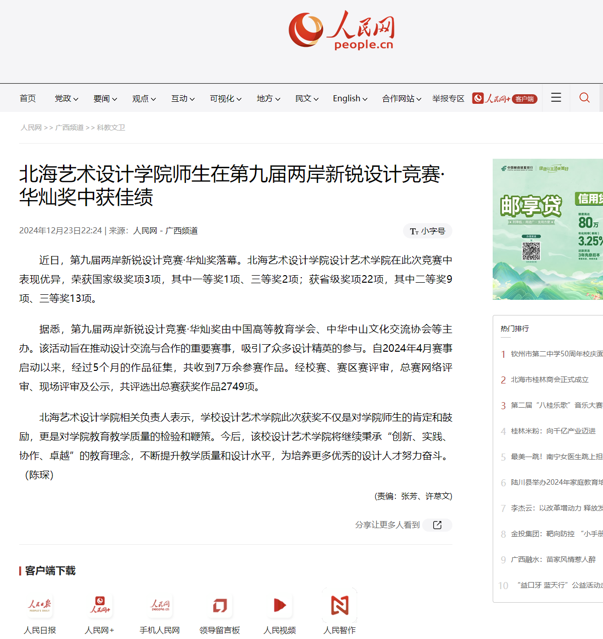 人民网:北海艺术设计学院师生在第九届两岸新锐设计竞赛·华灿奖中获佳绩