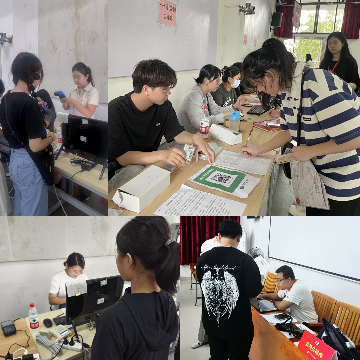 在熙熙攘攘的迎新现场,依稀听见这样一个个声音:同学,报到请往这边走!同学,学费在这边办理!同学,需要床单被褥吗?同学,绿色通道请往这边走!......迎新期间,大家分工协作、互助互帮,指导新生完成费用缴纳、一卡通办理、宿舍分配等报到手续,并协助完成后勤保障等工作。新生只需按指示牌前往相应窗口,即可现场完成所有报到流程。在整个过程中,不但提供了细致周到的服务,并主动帮助新生解决报到过程中遇到的各种问题。