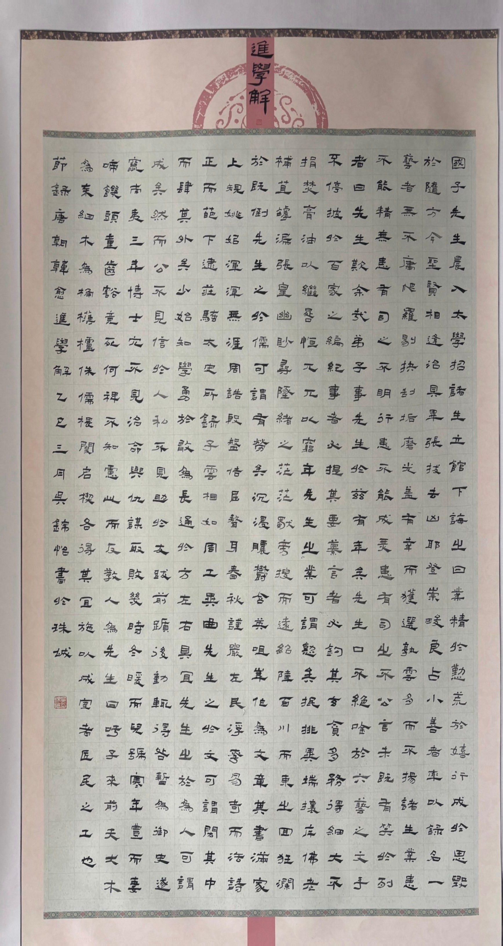 对于师弟师妹,她强调大学四年最应投入精力提升 “眼界”,这不单单指书法技艺本身,还涉及作品载体、作品形式、书论知识等多方面。她以自身为例,坦言回顾大一作品时,深感当初的稚嫩,也因此提醒学弟学妹,眼界的提升需时间沉淀,不可急于求成。