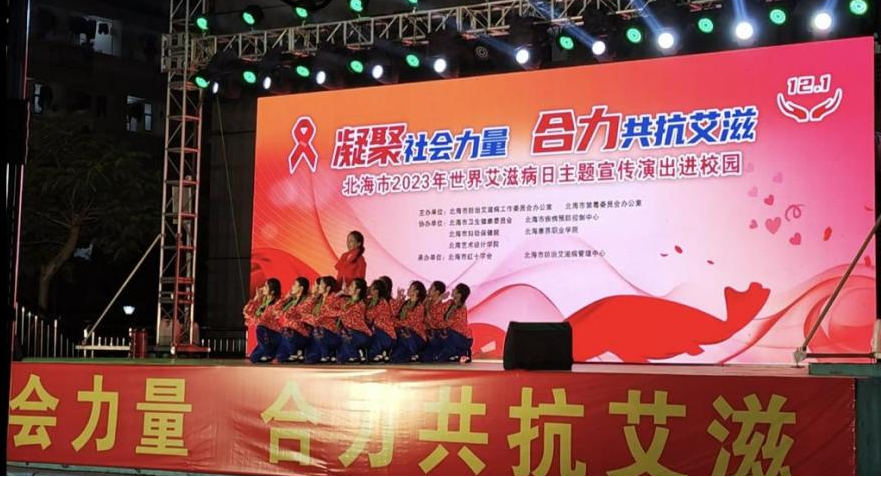 2023 年 12 月 1 日,黄悦教师还参与北海市 “世界艾滋病日” 主题宣传活动,指导节目《风筝》排练,助力提升公众防艾知识知晓率,推动当地公共卫生与禁毒工作开展。