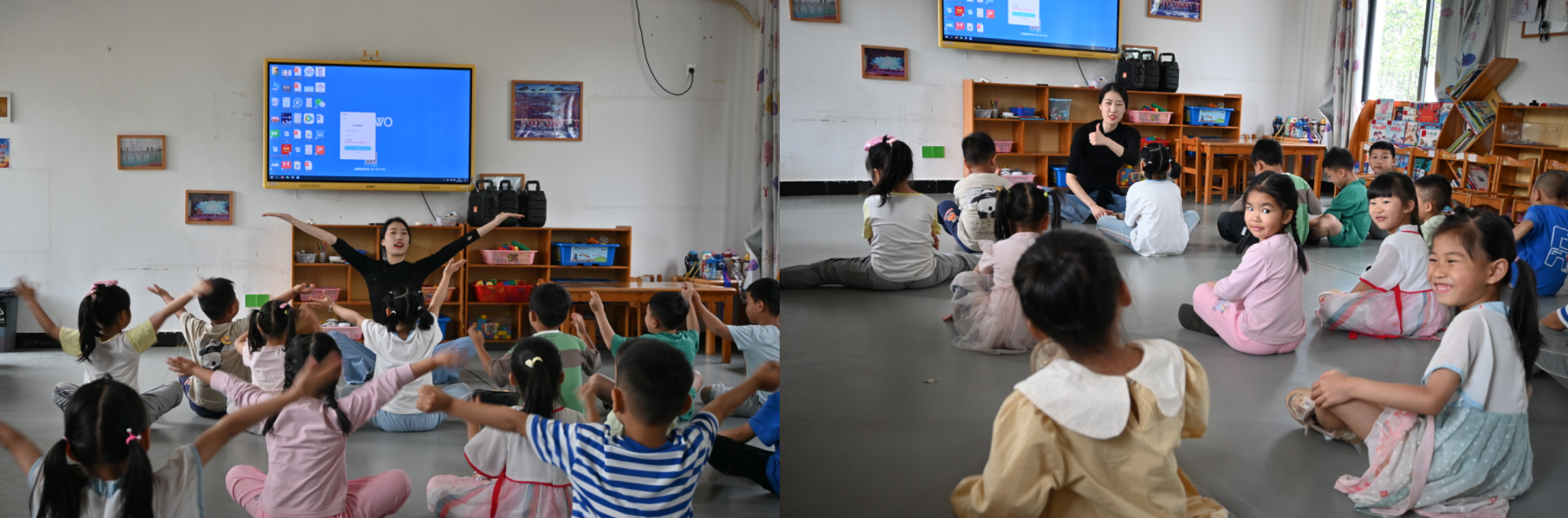 黄悦教师以《我和我的祖国》为载体,依托旋律与歌词的情感力量,设计贴合幼儿认知特点的教学方案。教学过程中,她注重情感共鸣与动作规范的结合,通过分解示范、互动练习等方式,让孩子们在理解舞蹈所蕴含的民族自豪感基础上,完成肢体语言的学习。这种 “情感 + 技能” 的双维教学模式,既提升了孩子们的艺术感知力,又强化了爱国主义教育的实效性。
