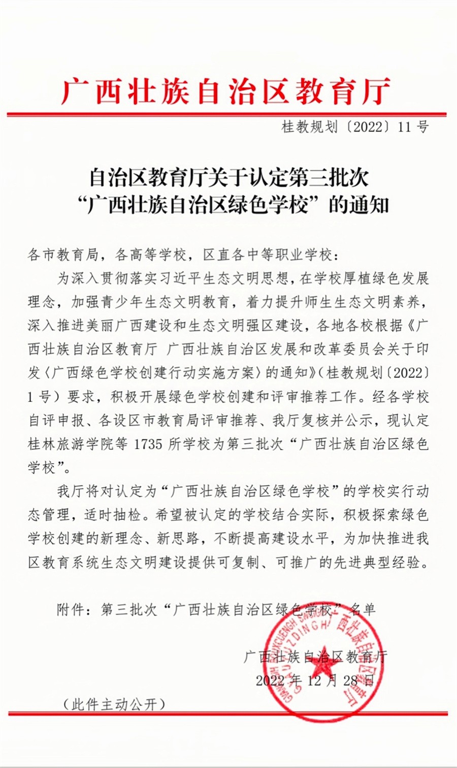 喜报│我校荣获“广西壮族自治区绿色学校”称号