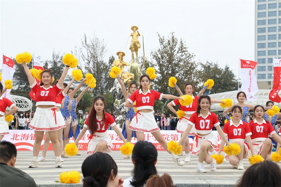 迎着北部湾灿烂的朝阳,4月8日 ,北海银滩沙雕比赛暨北海艺术设计学院沙滩运动会在北海市银滩公园举行。北海旅游集团有限公司副总经理李小军、学校党政领导、全校师生参加开幕式。