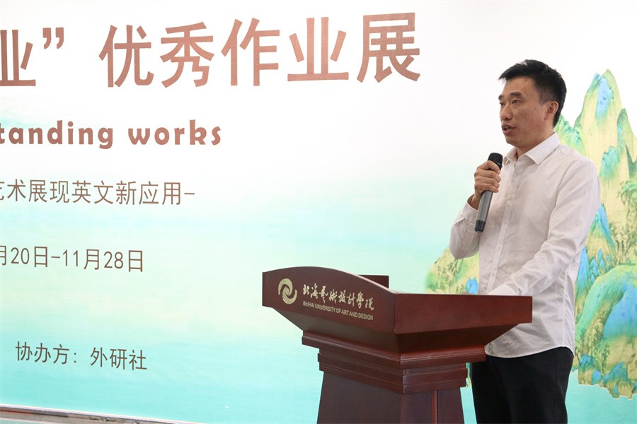 开展仪式上,副校长陶立阳向外语教研室的各位老师和所有支持本次展览的同仁表示感谢,并向入选该次作业展的同学表示祝贺。他表示,外语教研室举办的第五届“英语+专业”优秀作业展在我校形成了良好的英语和专业结合的学习氛围,提升了学生的英语学科素养,也为学生提供了一个互相学习、共同提高的良好平台。他希望通过作业展能够激发更多同学的学习兴趣,进一步加强英语与专业知识的融合学习。