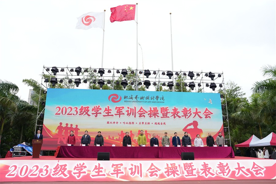 军姿飒爽,军容整齐,队列齐整,意志高昂。12月17日上午,我校2023级学生军训会操暨表彰大会在西校区操场举行。北海市海城区人民武装部部长邝伟乾,学校党委书记范徽忠,校长卢新华,党委副书记彭仁,副校长刘朝雄、包建明、何煜,各职能部门和二级学院领导出席大会。大会由副校长何煜主持。
