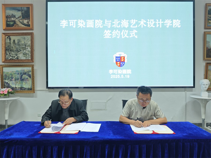 在全体参会人员的见证下,李可染画院副院长郭永琰和美术学院执行院长龚为作为双方代表签署合作协议,双方正式建立长期艺术实践与交流合作关系。