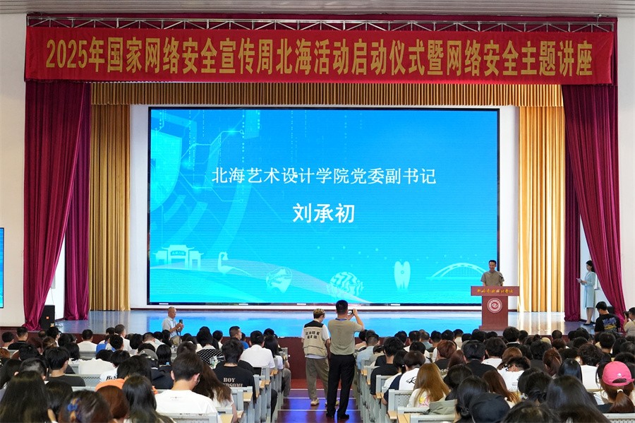 9月15日上午,由北海市委网信办主办,市委宣传部等12个部门联合举办的2025年国家网络安全宣传周北海活动启动仪式暨网络安全主题讲座在北海艺术设计学院西校区礼堂举行。我校校长卢新华,党委副书记陈毅华、刘承初出席活动。