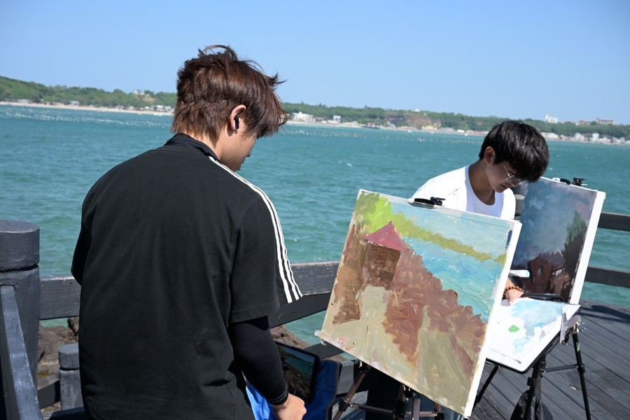 涠洲岛综合实践教学活动期间,各二级学院立足学科优势、锚定专业特色,以“精准适配、深度赋能”为导向,精心策划并落地了一系列与专业人才培养目标高度契合的实践教学项目。先后前往了涠洲岛南湾码头、火山口地质公园、滴水丹屏等地进行写生实践教学活动与艺术创作。通过亲身感受涠洲岛的文化古建筑、民居建筑、自然风景、风土人情,拓宽学生知识视野,引导学生从自然中感知美、表达美,开阔眼界,加深学生多样化的艺术感受,培养他们对多元文化的探索与掌握,培养整体艺术造型力和创造力,提高艺术鉴赏力和表现力。