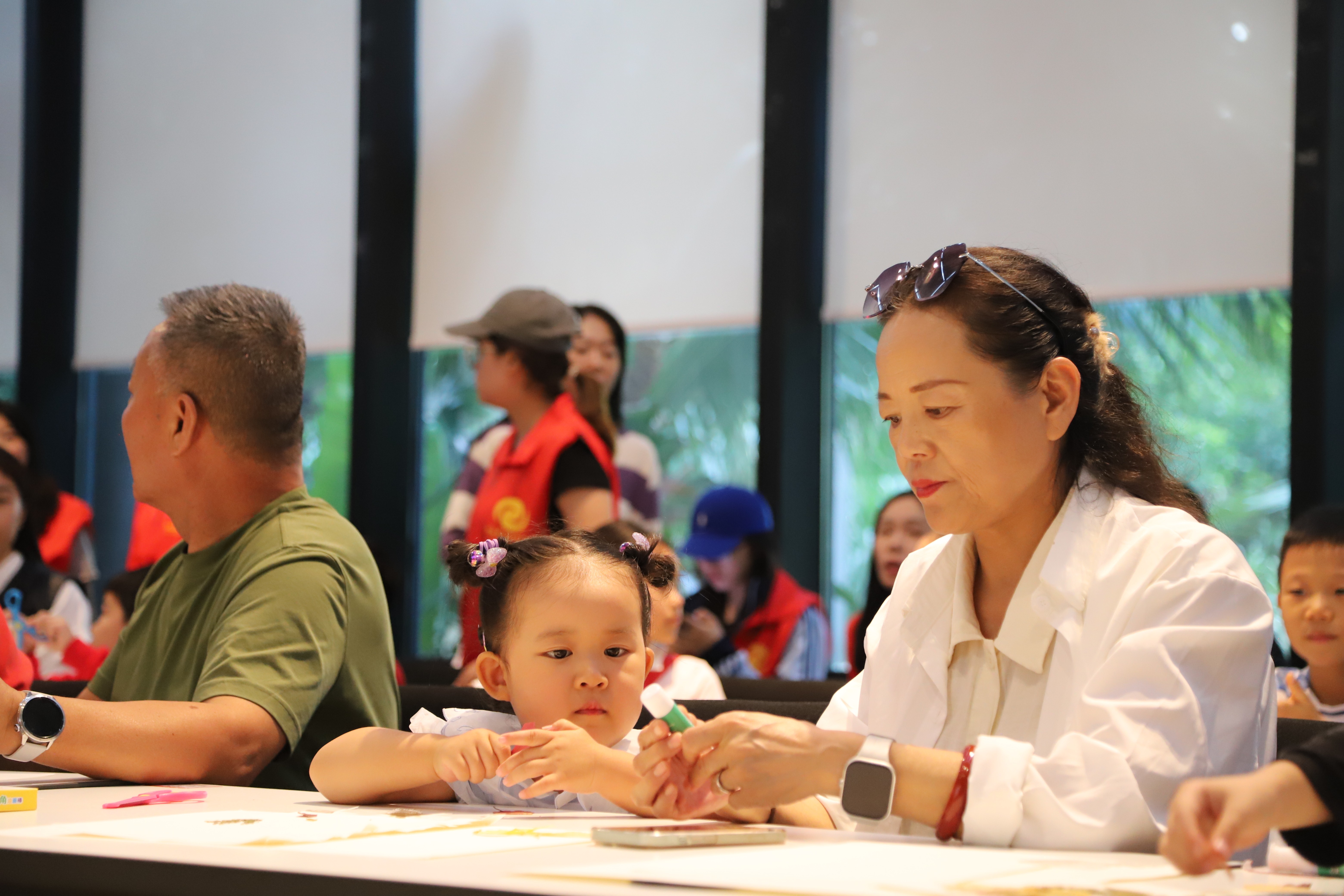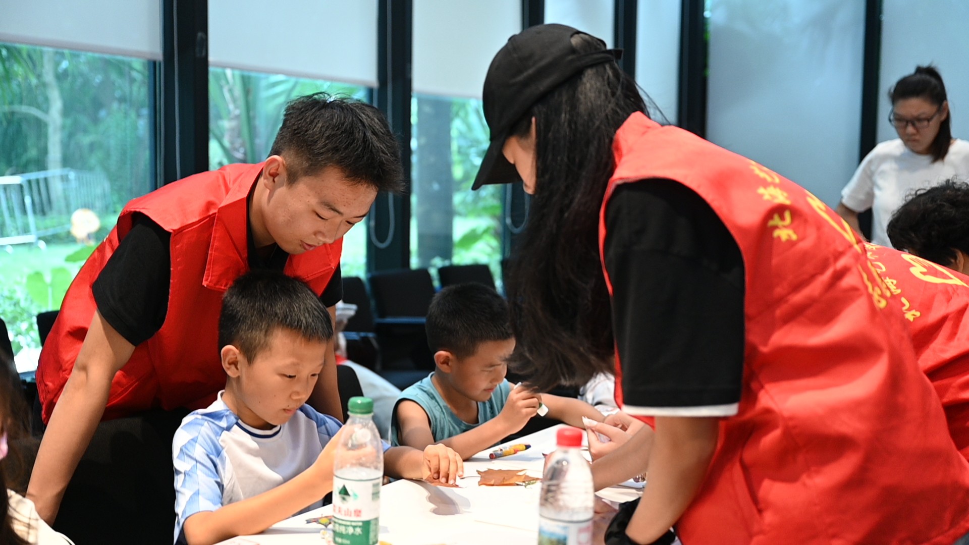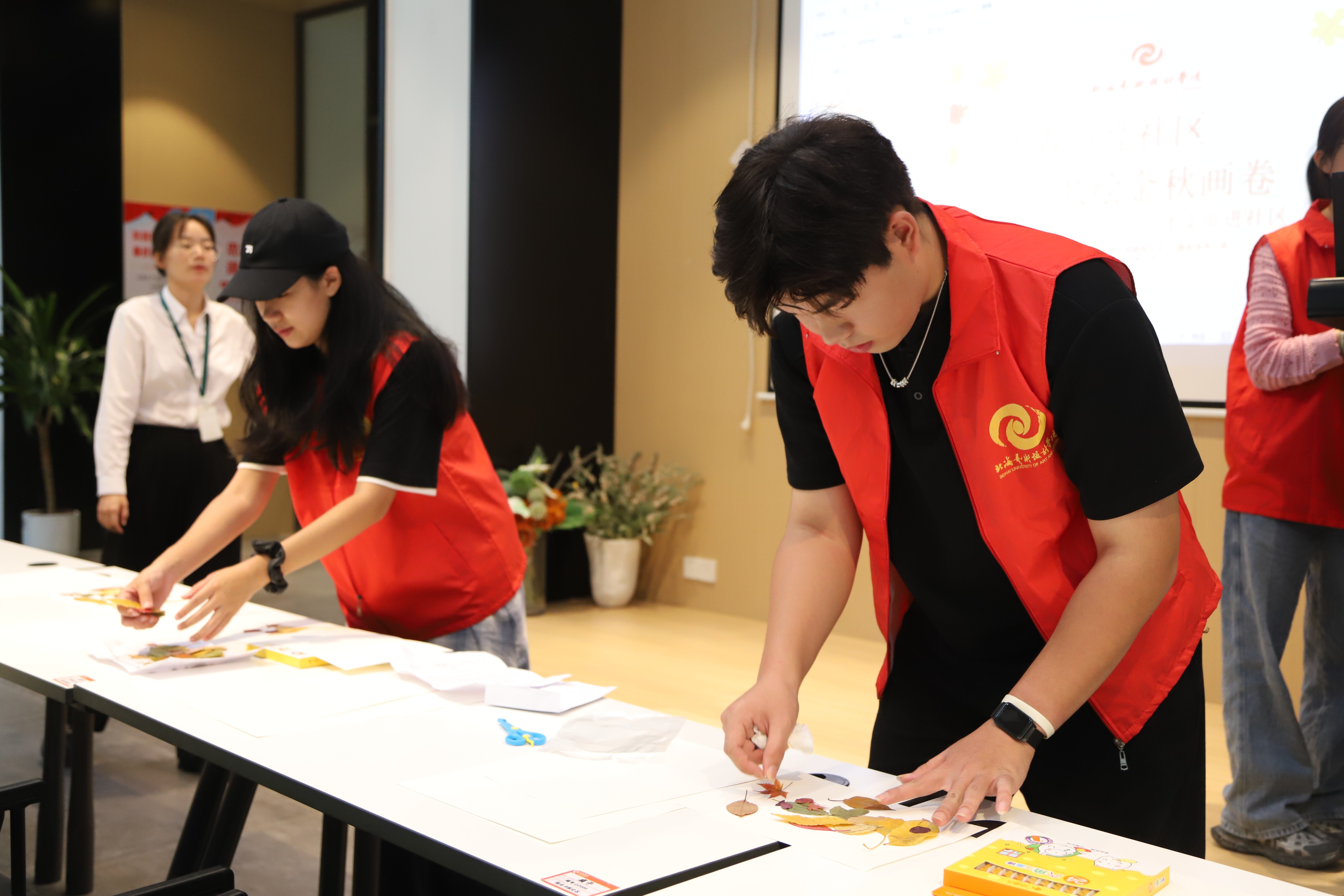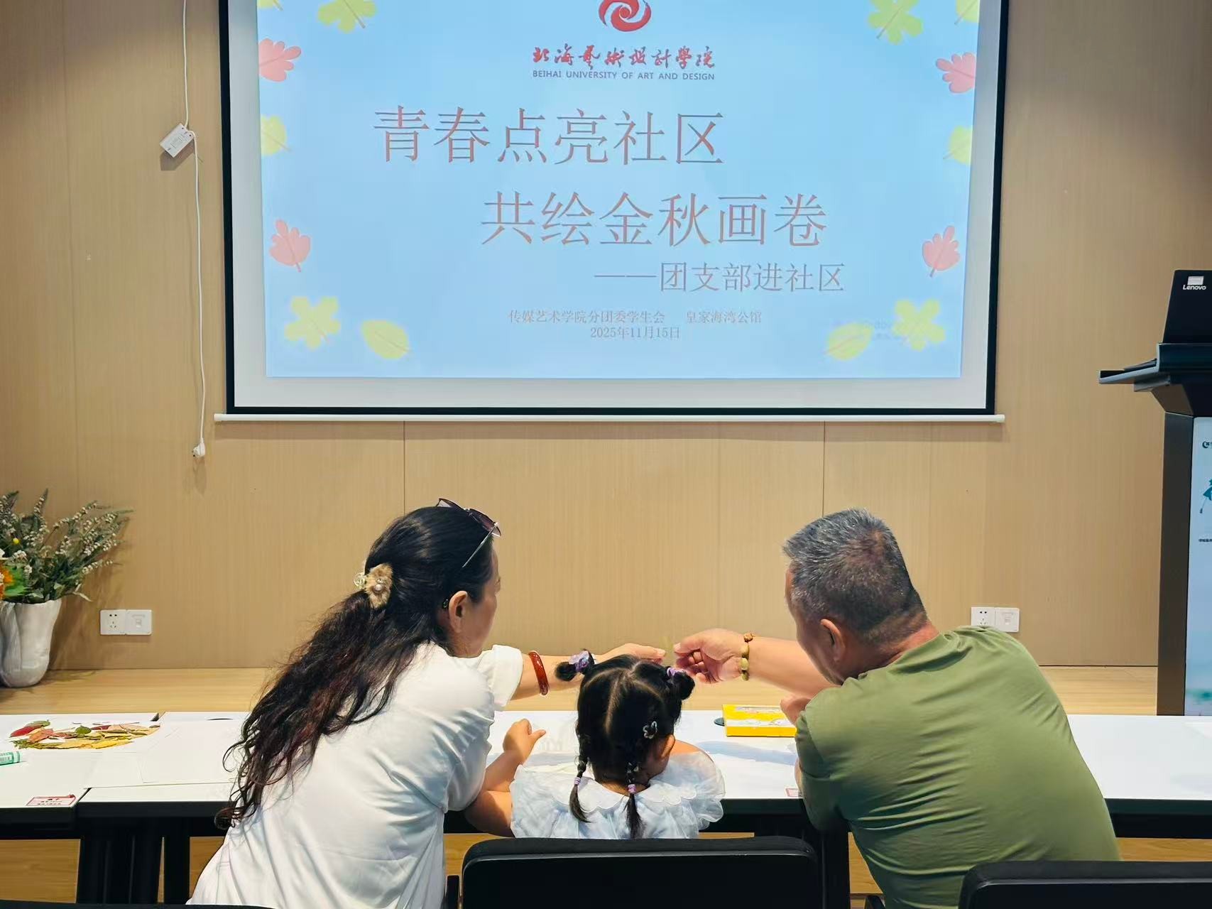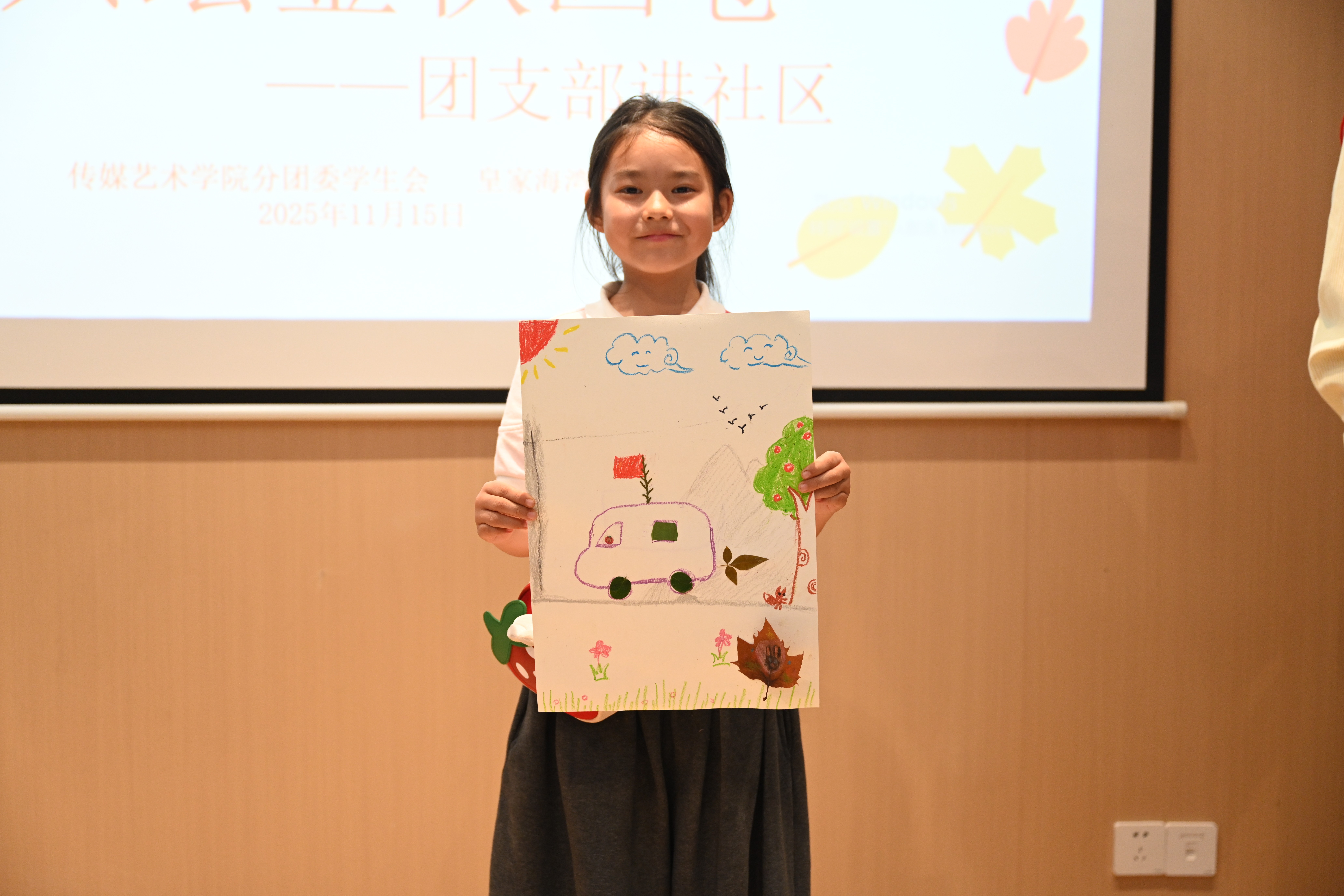 亲子绘画”在社区共享会议室温馨开启。传媒艺术学院的志愿者们充分发挥专业特长,化身“艺术导师”,引导孩子们以“我眼中的秋天”为主题展开创作。在志愿者一对一陪伴下,小朋友们挥洒童真色彩,将金黄的落叶、高远的蓝天、欢笑的家人一一呈现在画纸上。现场氛围温馨融洽,原本静谧的空间化作流动的色彩海洋,洋溢着浓厚的艺术气息与亲子温情。