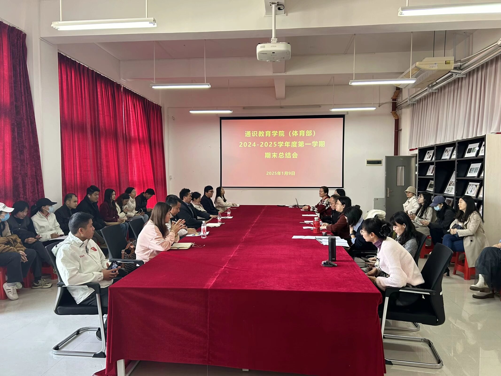 2025年1月9日上午,在西校区图书馆508会议室,通识教育学院(体育部)召开2024-2025学年第一学期期末总结会。本次会议由副院长黄丹主持,副校长陶立阳、通识教育学院院长杨莹、教务处曾之光副主任,及学院全体教职员工出席会议
