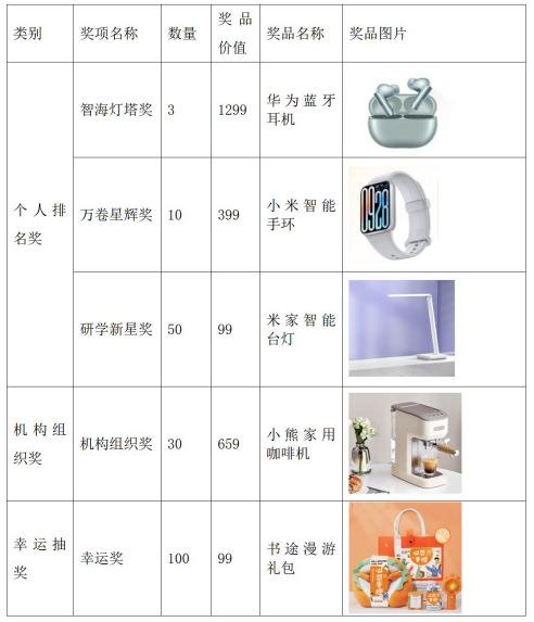 3.个人排名奖:活动结束后,根据答题成绩排名,颁发一 、二 、三等奖,并发放奖品。