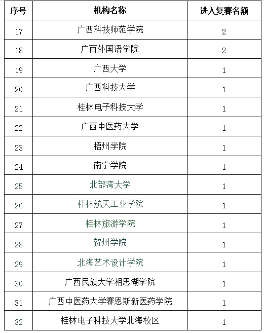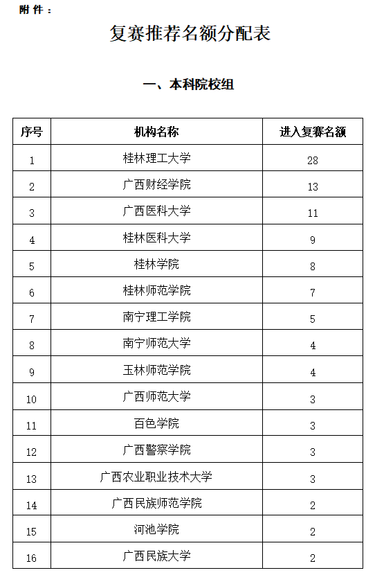 附件:复赛推荐名额分配表