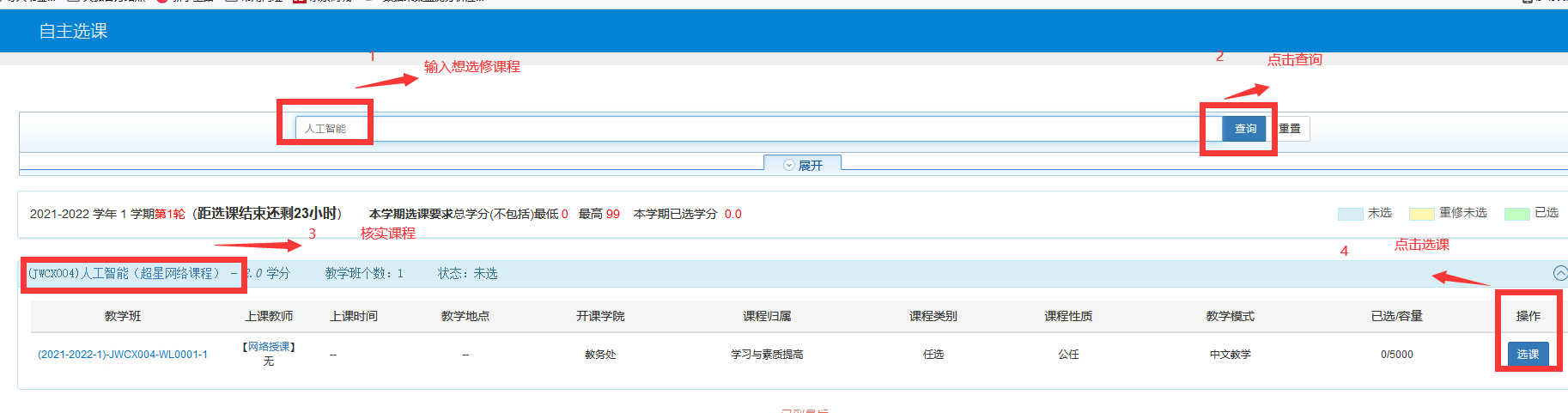(三)珍惜教学资源,选课过程一旦结束无特殊原因不得退选,也不得无故旷课。选课结束后,所有同学务必修完所学课程,中途放弃的课程期末成绩计为“0”分。