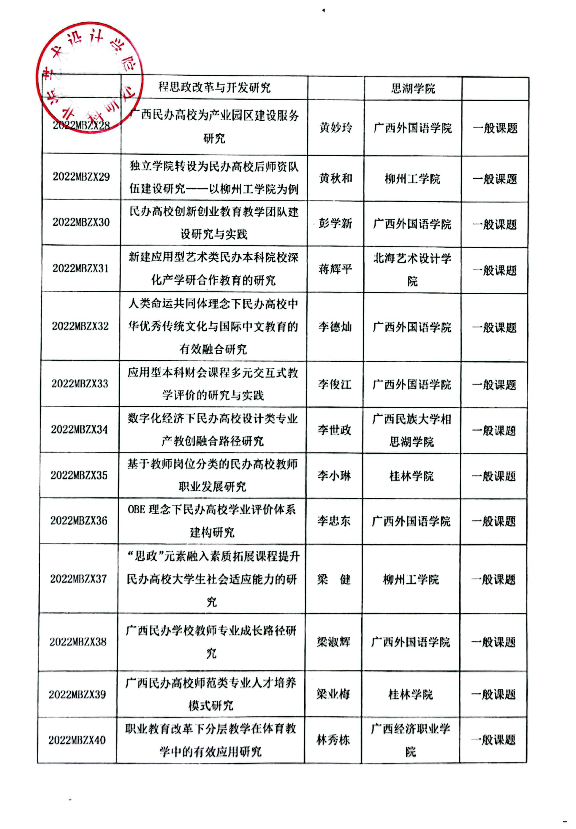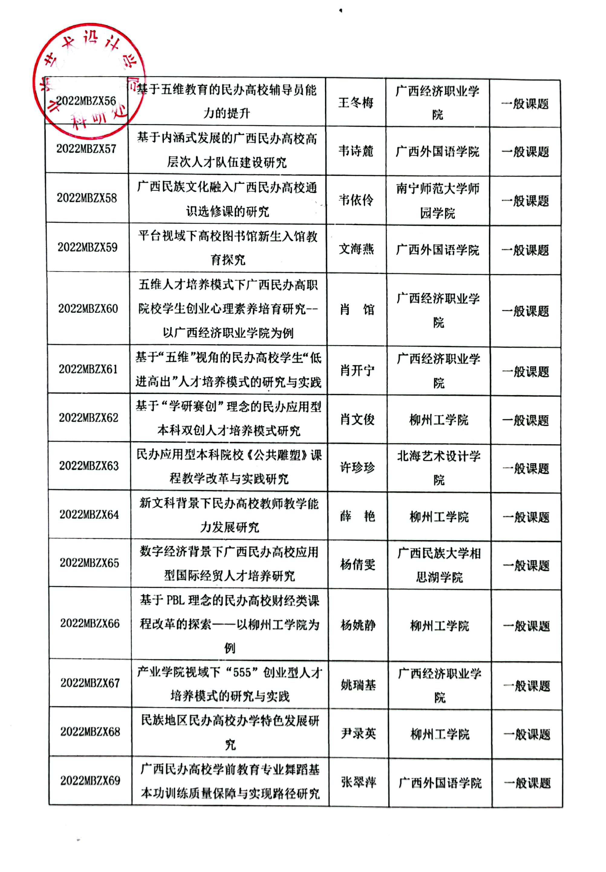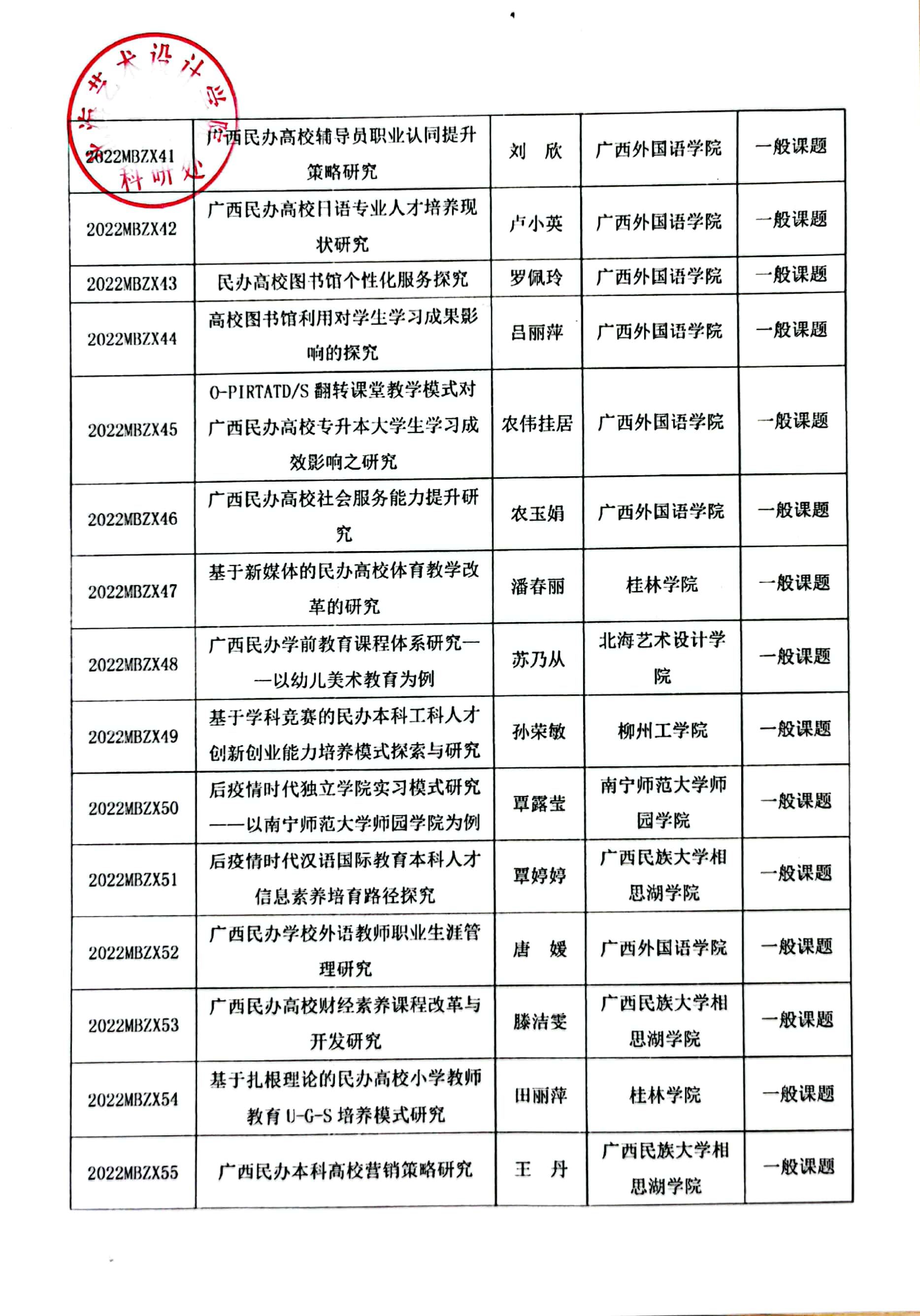 关于公布2022年广西民办教育科学规划课题立项名单通知文件