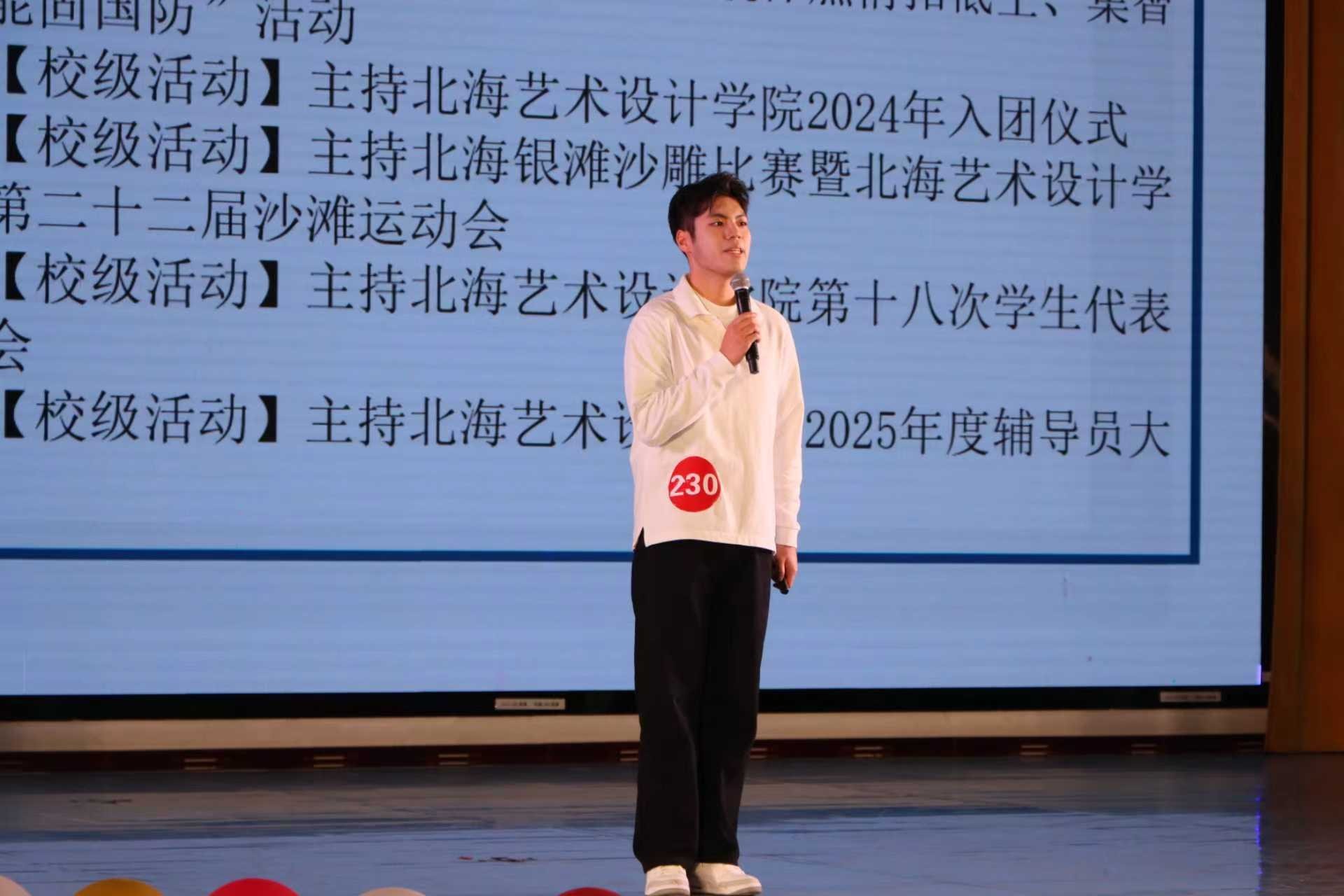 为凝聚文明力量、树立青春风尚,助力学校文明形象塑造与文化活力提升,我校文明形象大使大赛初赛于11月1日至11月2日在西区大礼堂顺利举办并圆满结束。出席本次活动的评委老师有广西艺术学院舞蹈学院副院长白洁,广西艺术学院党办院办、发展规划处规划科科长郑靖,北海艺术设计学院校长卢新华等十余位评审专家。