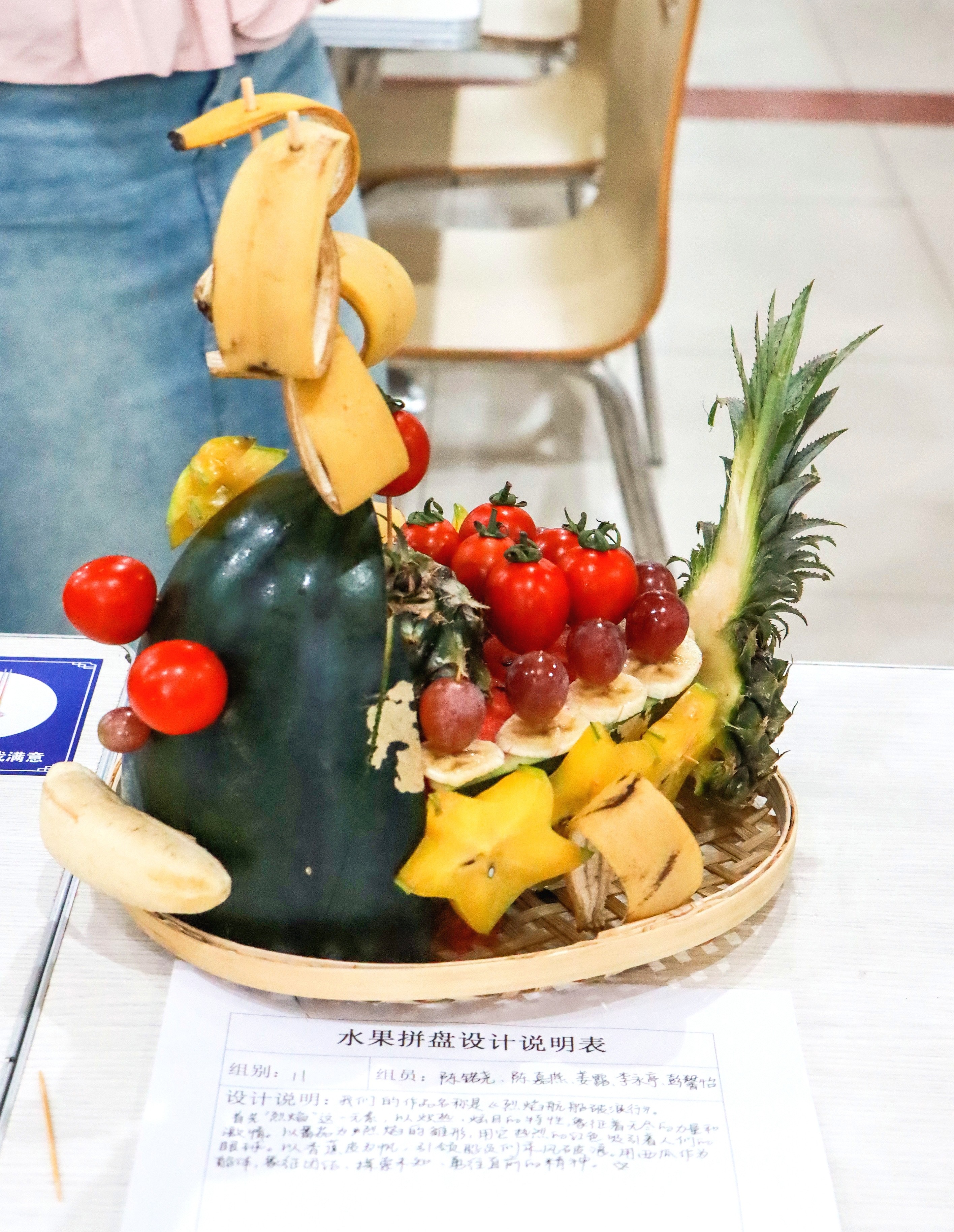 经过激烈又愉快的角逐,最终选出了获胜小组,从而取得了丰富的水果物资。接下来就是本次活动的重要环节——“水果拼盘大赛”。