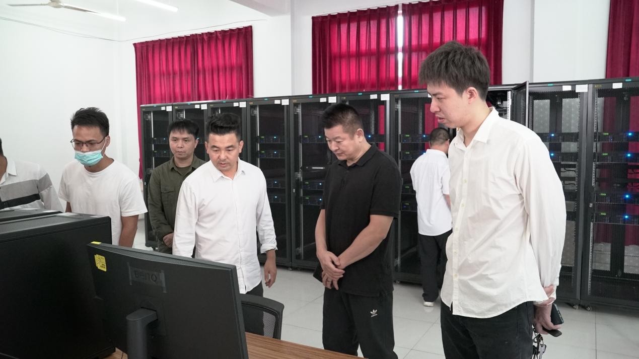 在综合楼动画实验室,孙永辉院长介绍实验室中正在参与动画项目实训的学生们的情况。在综合楼渲染实验室,刘涛主任和梁达锦副主任介绍了渲染机器设备以及正在渲染中的作品。在综合楼设备室,负责人陈蔓延老师向企业介绍和展示学院供学生实践使用的拍摄设备。在3D打印工作室,工作室负责人冯兆丹老师介绍了工作室近年来的发展成果,展示了学生优秀作品。在小卷工作室,刘涛主任介绍了教学成果及学生实践情况。随后,校企双方在综合楼演播厅观看了北海艺术设计学院宣传片。