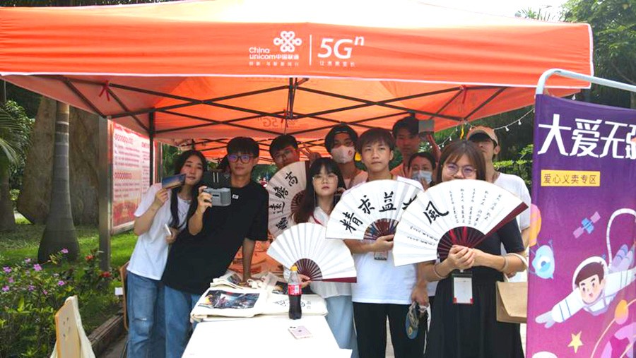 时近仲夏,踩着五月的尾巴,由设计艺术学院分团委和人文教育学院分团委共同举办的“艺”想“添”开主题活动于2022年5月27日圆满结束。此次活动为期两天,以“科技创新创业+以物换物+爱心捐赠”的形式展开,又划分了四个活动专区:手工专区、互动专区、爱心义卖专区和毕业捐赠专区。同时为方便同学们了解活动分区特别设置了咨询台。活动最终的全部收益和售卖后的剩余产品,将以学校和参与师生的名义一起捐往河池市大化瑶族自治县安置区。