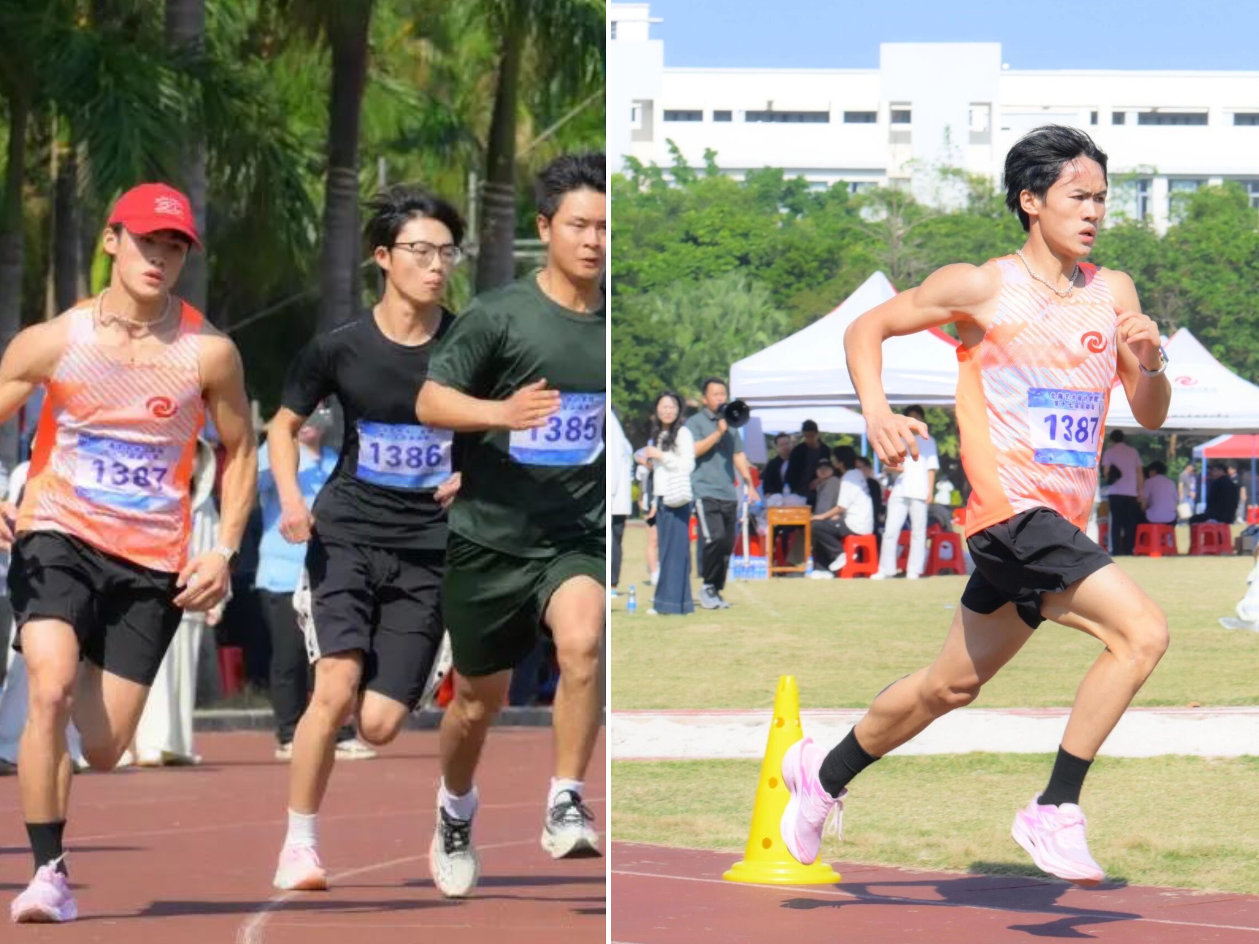 服饰2303班的吴江山同学表现尤为亮眼,他在男子800米决赛中以2分12秒26的成绩摘得第一名,又在男子1500米项目里跑出4分45秒58的佳绩,再度将第一名收入囊中。